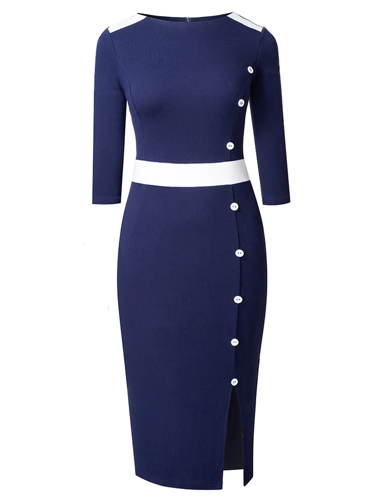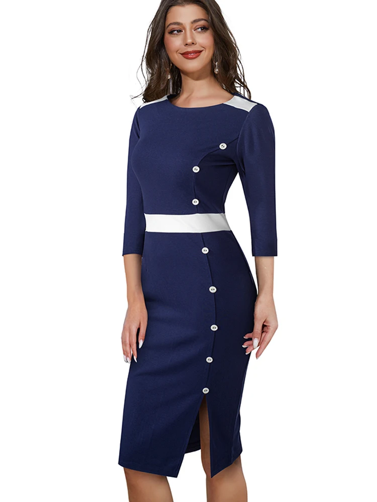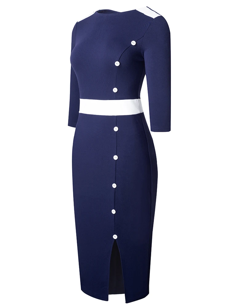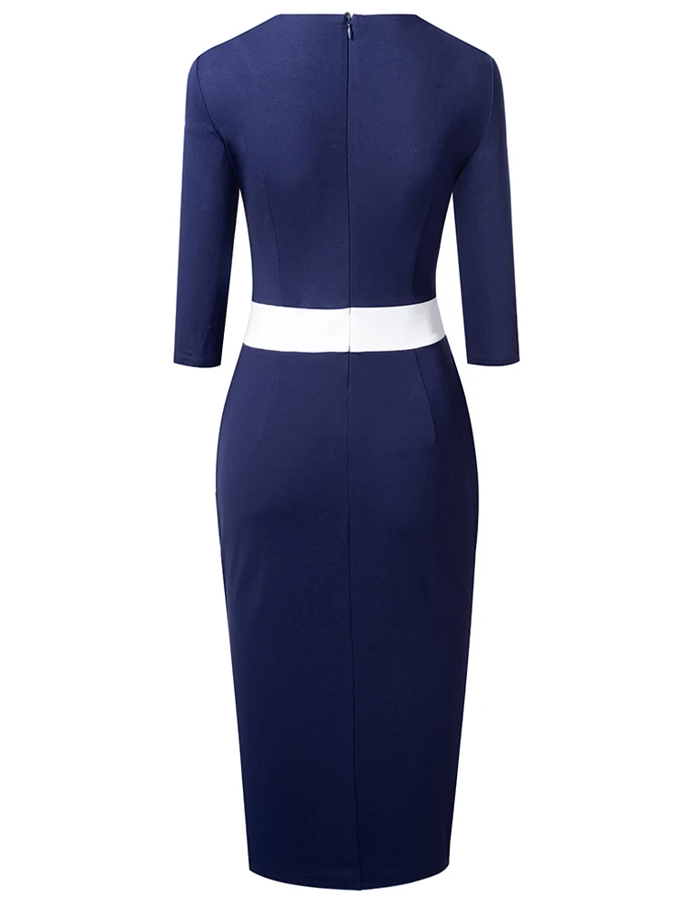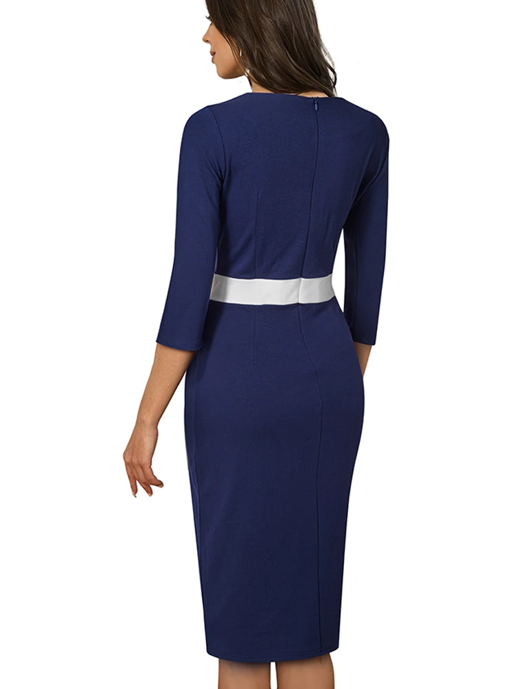 Nice-Forever Autumn Women Classy Contrast Color Patchwork Office Dresses Formal Business Elegant Bodycon Dress B746