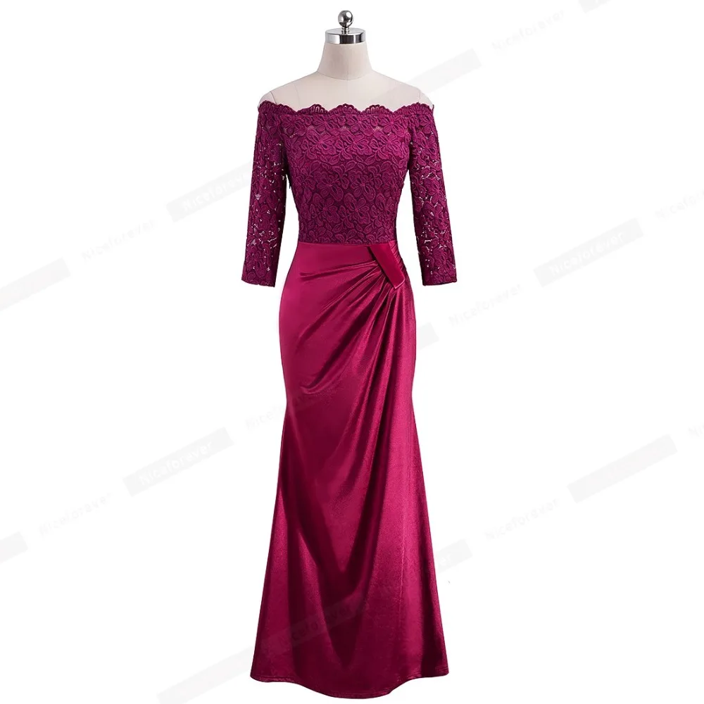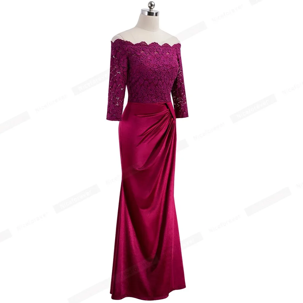 Nice-forever Elegant Embroidery Floral Lace with Side-Draped Gown Party Celebrity Vintage Lone Maxi Women Dress BTYA029