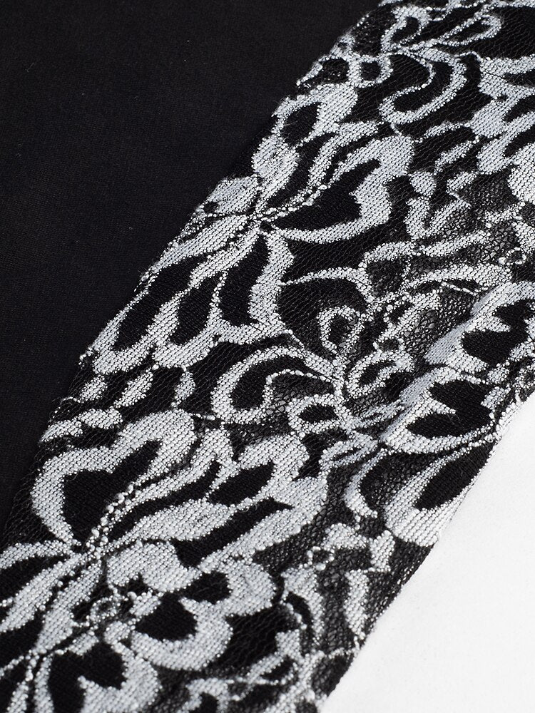 Nice-forever Winter Women Vintage Lace Patchwork with Long Sleeve T-shirts Casual Loose Tees Top bty253