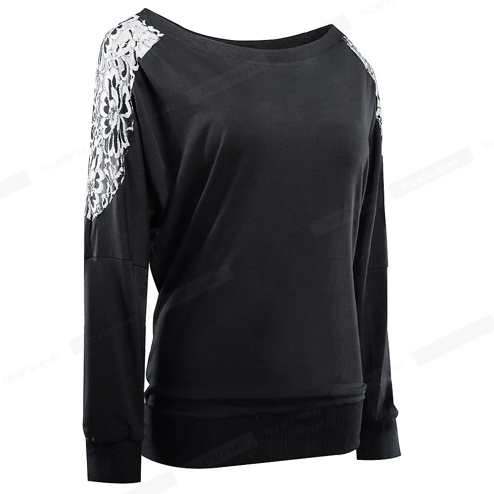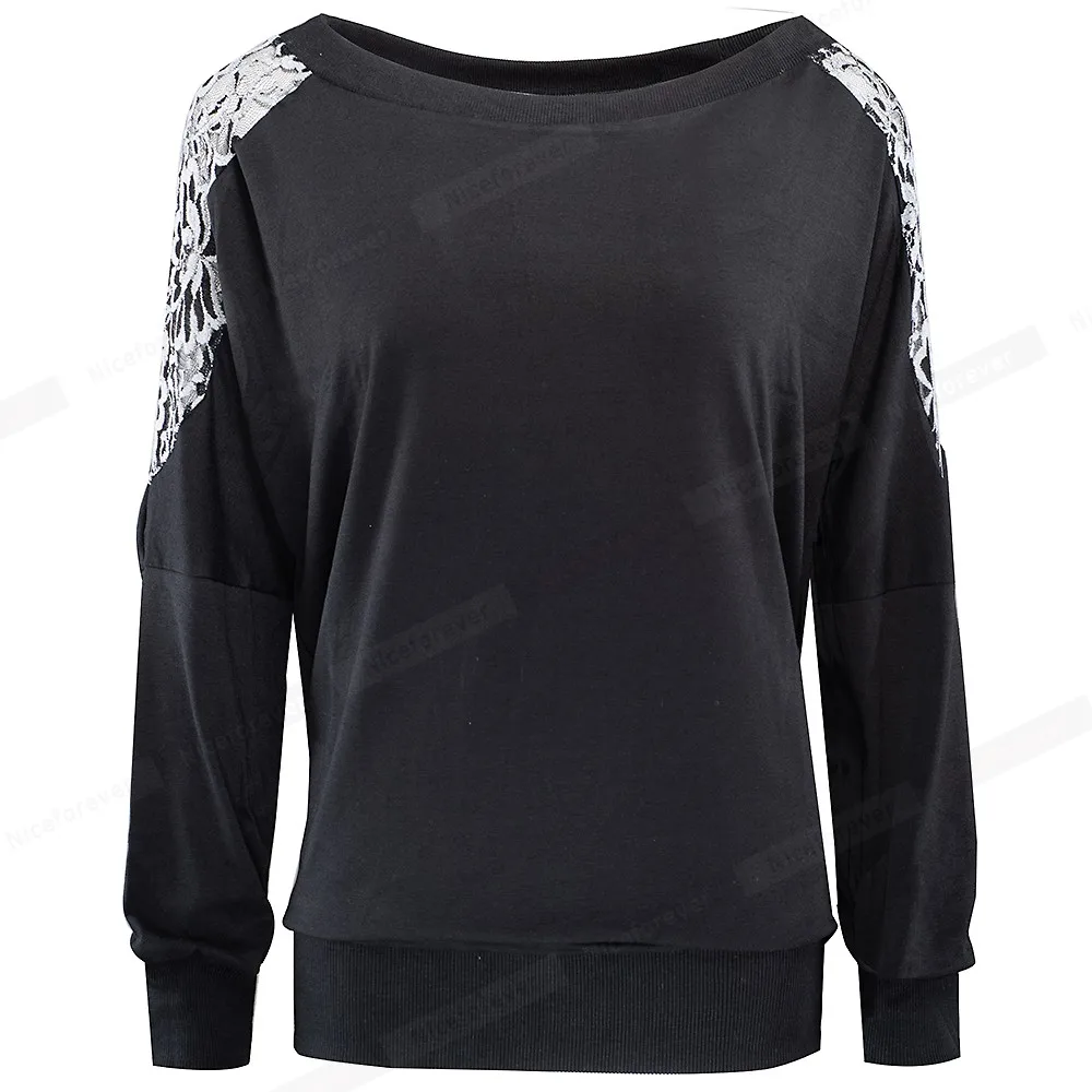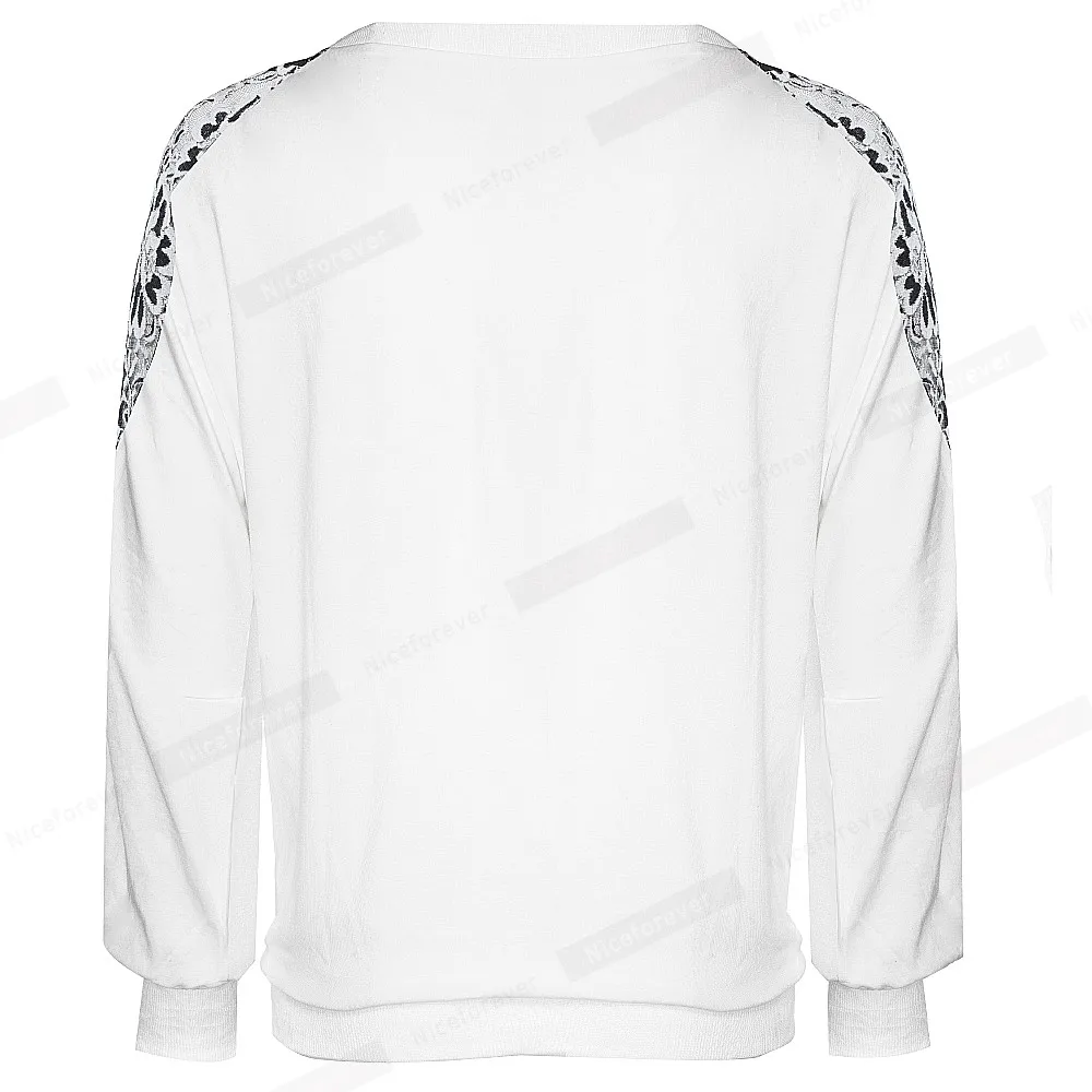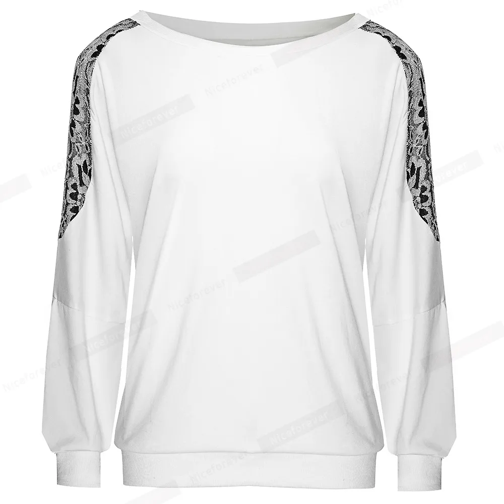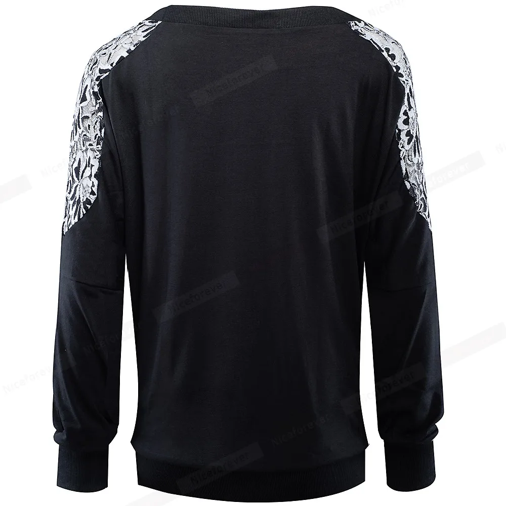 Nice-forever Winter Women Vintage Lace Patchwork with Long Sleeve T-shirts Casual Loose Tees Top bty253