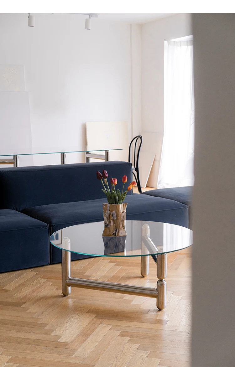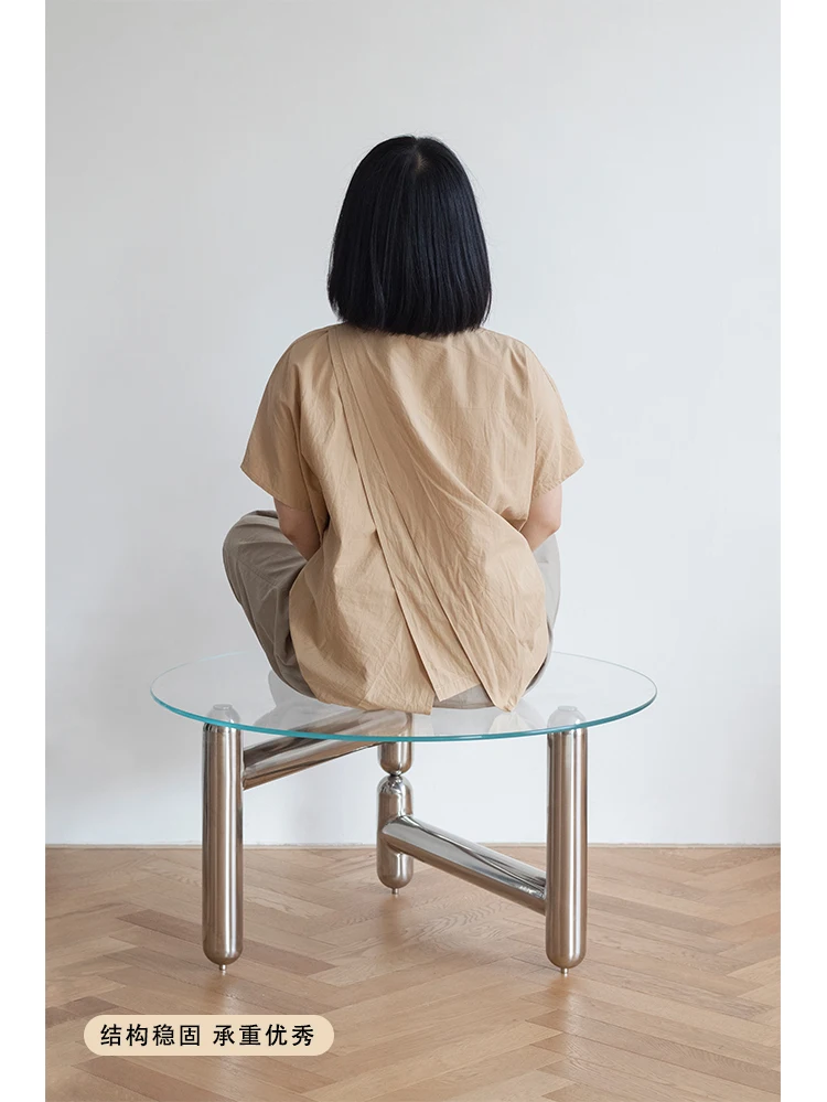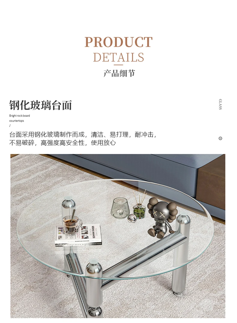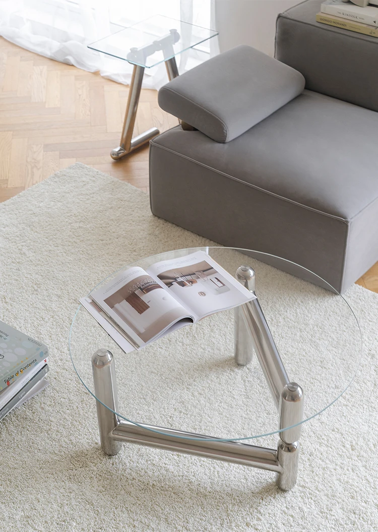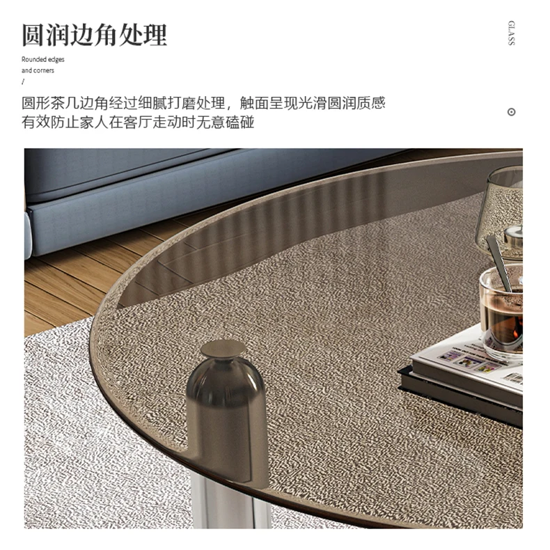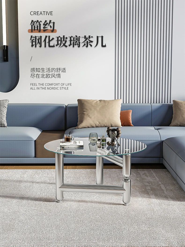 Nordic Transparent Coffee Table Living Room Luxury Glass Coffee Table Round Stainless Steel Luxury Muebles Minimalist Furniture