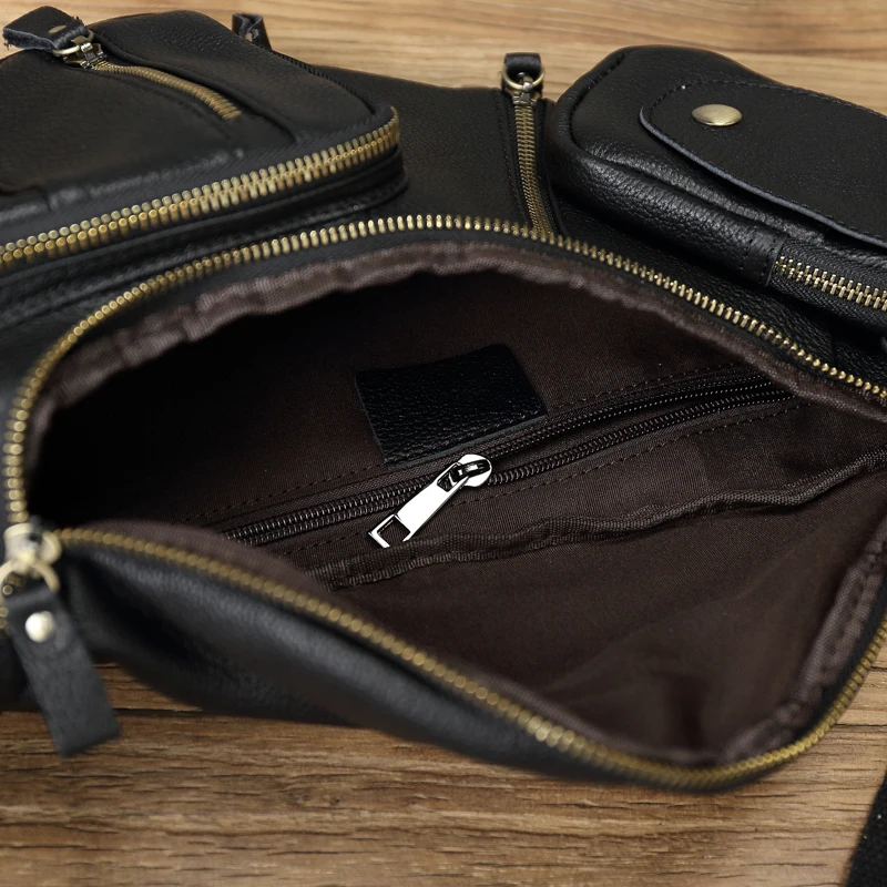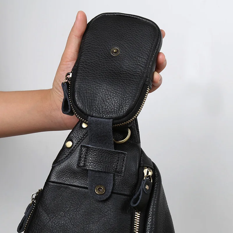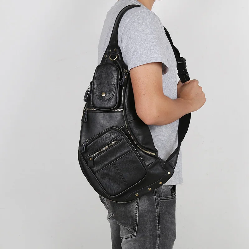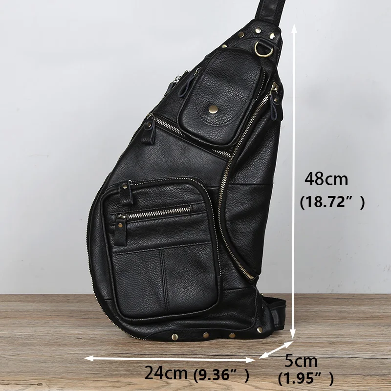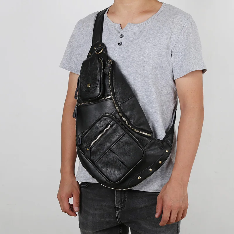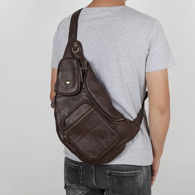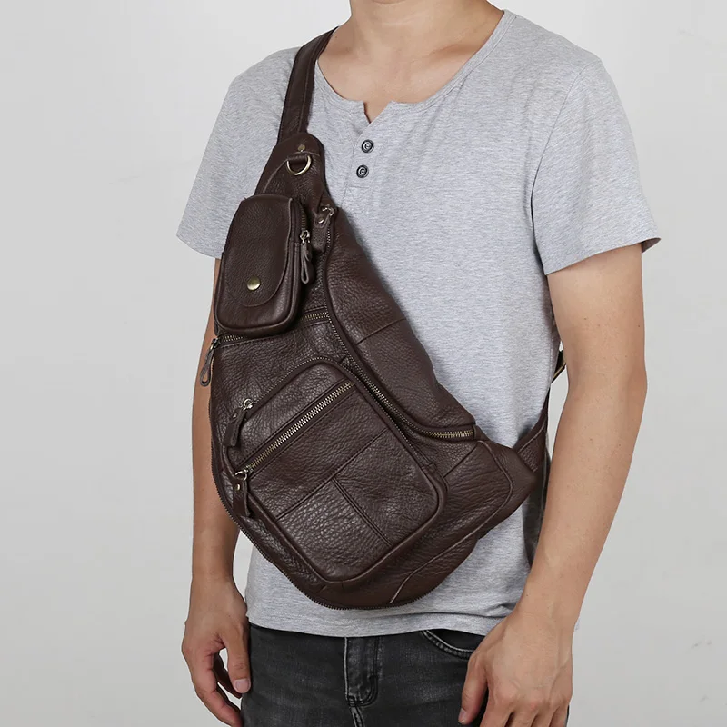 NZPJ Leather Men's Chest Bag Retro Top Layer Cowhide Casual Messenger Bag Korean Version Shoulder Bag Large-Capacity Sports Bag