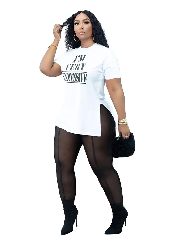 Plus Size Two Piece Sets Summer Sexy Fitness Outfits Nightie Short Sleeve Tshirt and Mesh Pants Sets Wholesale Bulk Dropshipping