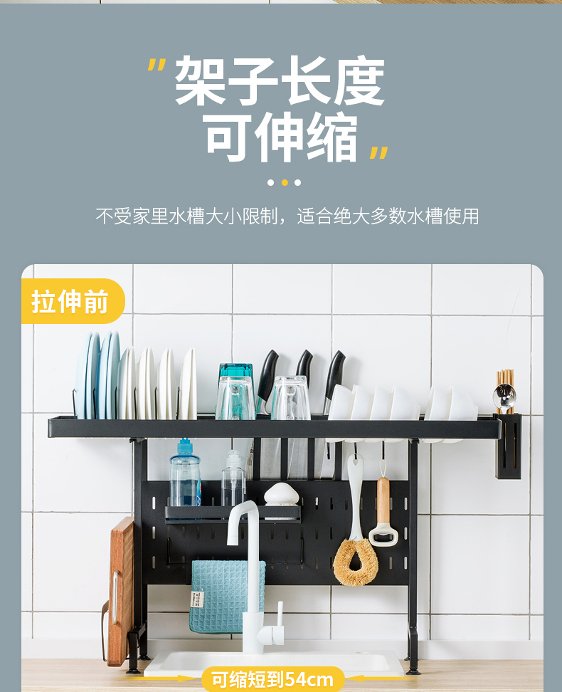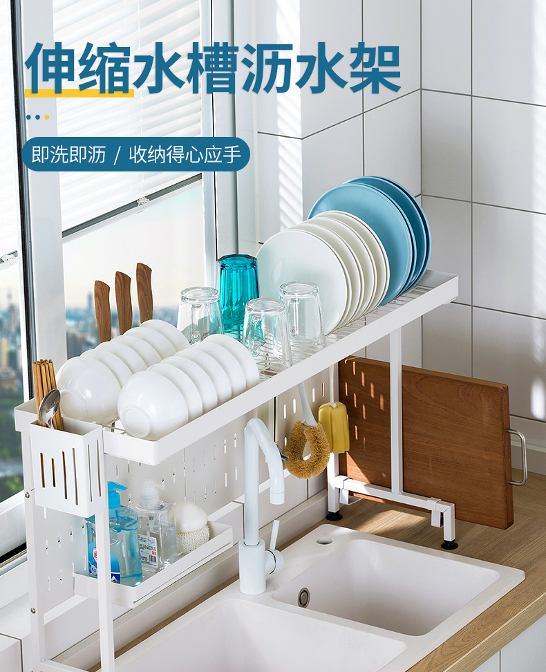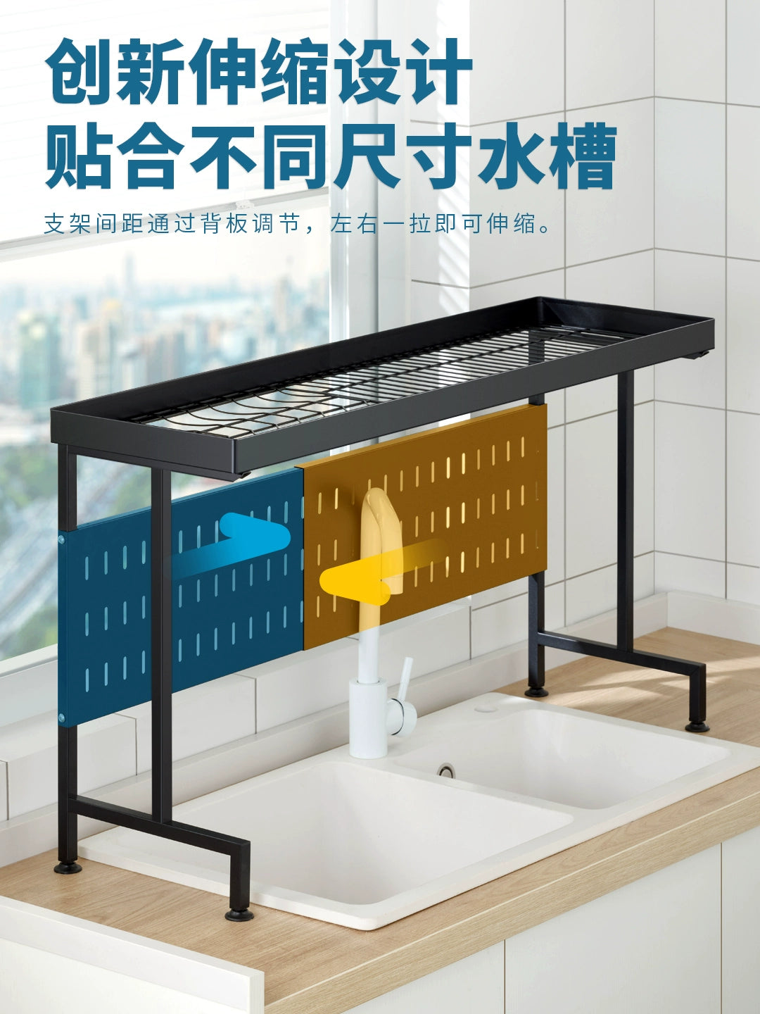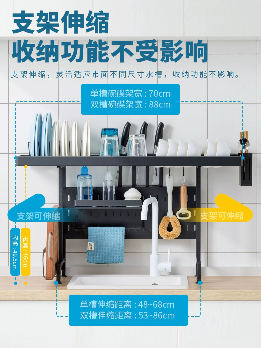 Retractable Kitchen Sink Storage Shelf Countertop Place Bowls and Dishes Chopsticks Multi-Functional Domestic Sink Top Draining Storage Rack