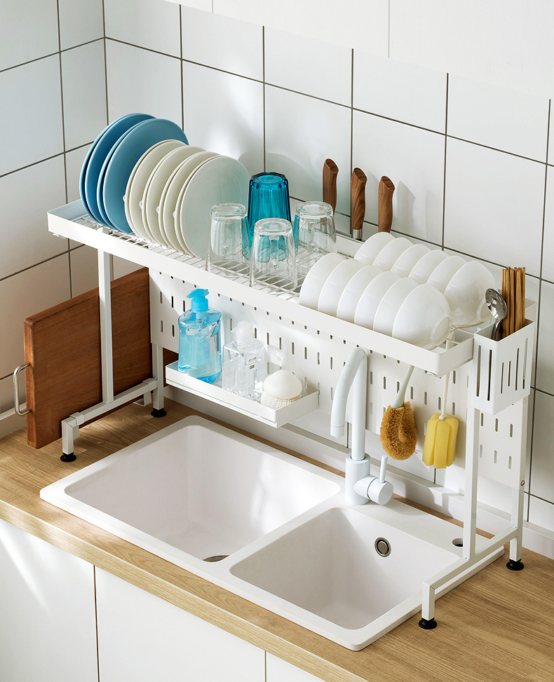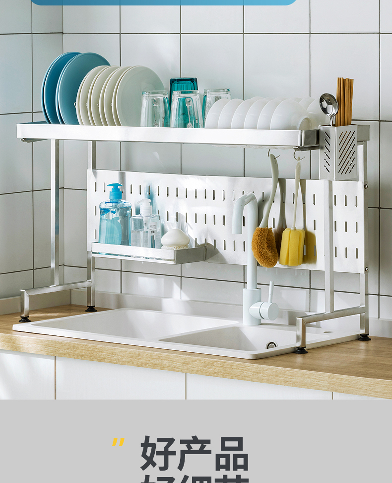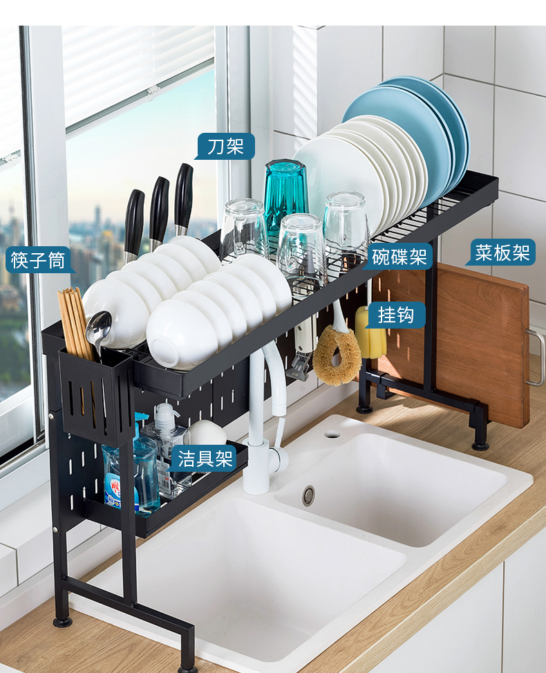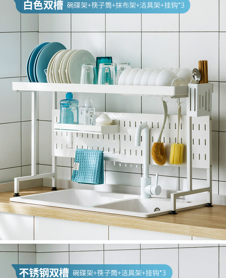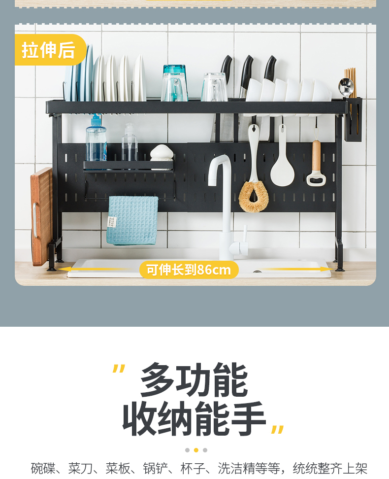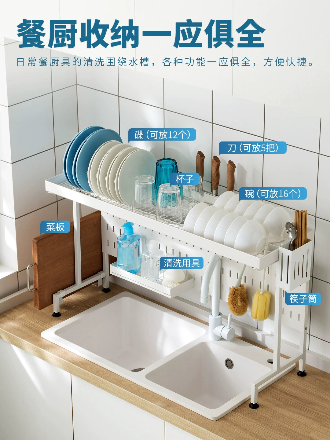 Retractable Kitchen Sink Storage Shelf Countertop Place Bowls and Dishes Chopsticks Multi-Functional Domestic Sink Top Draining Storage Rack