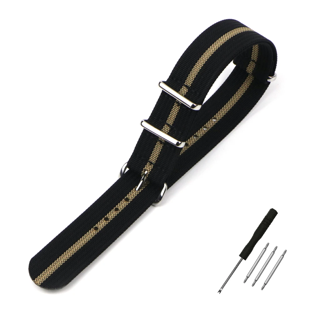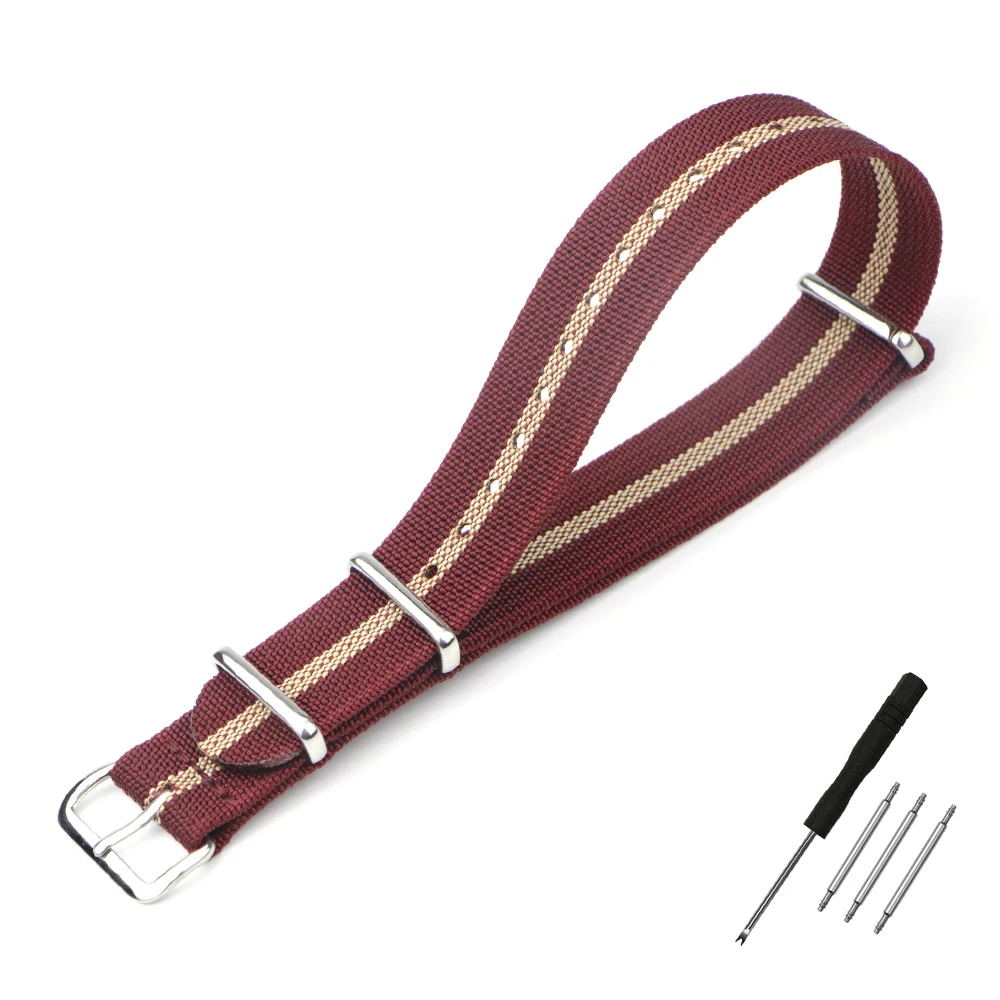Ribbed Watch Strap 20mm 22mm 18mm Rugged Nylon Military Straps Retro Watchband Braid Ballistic Fabric Bands