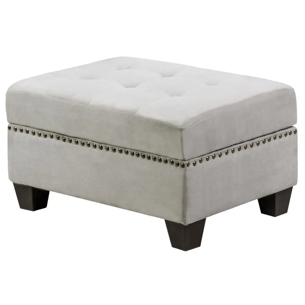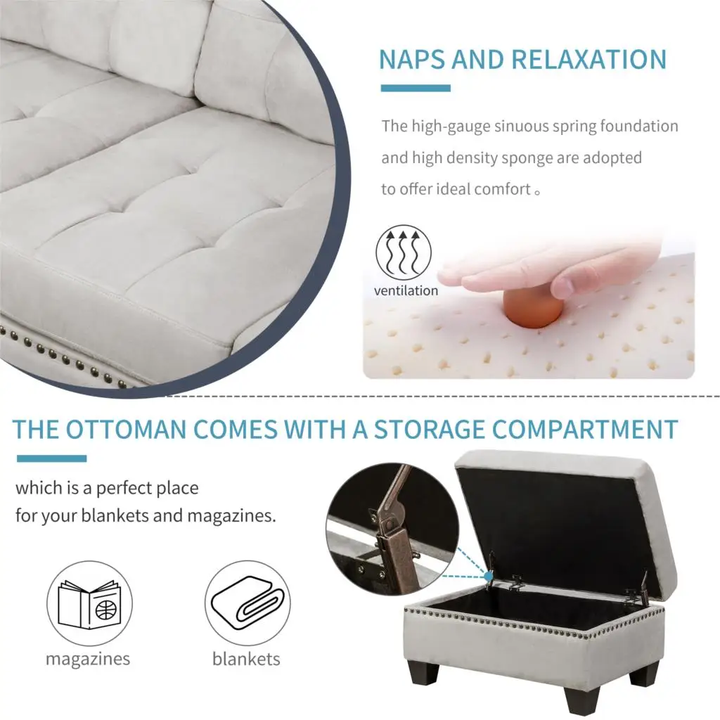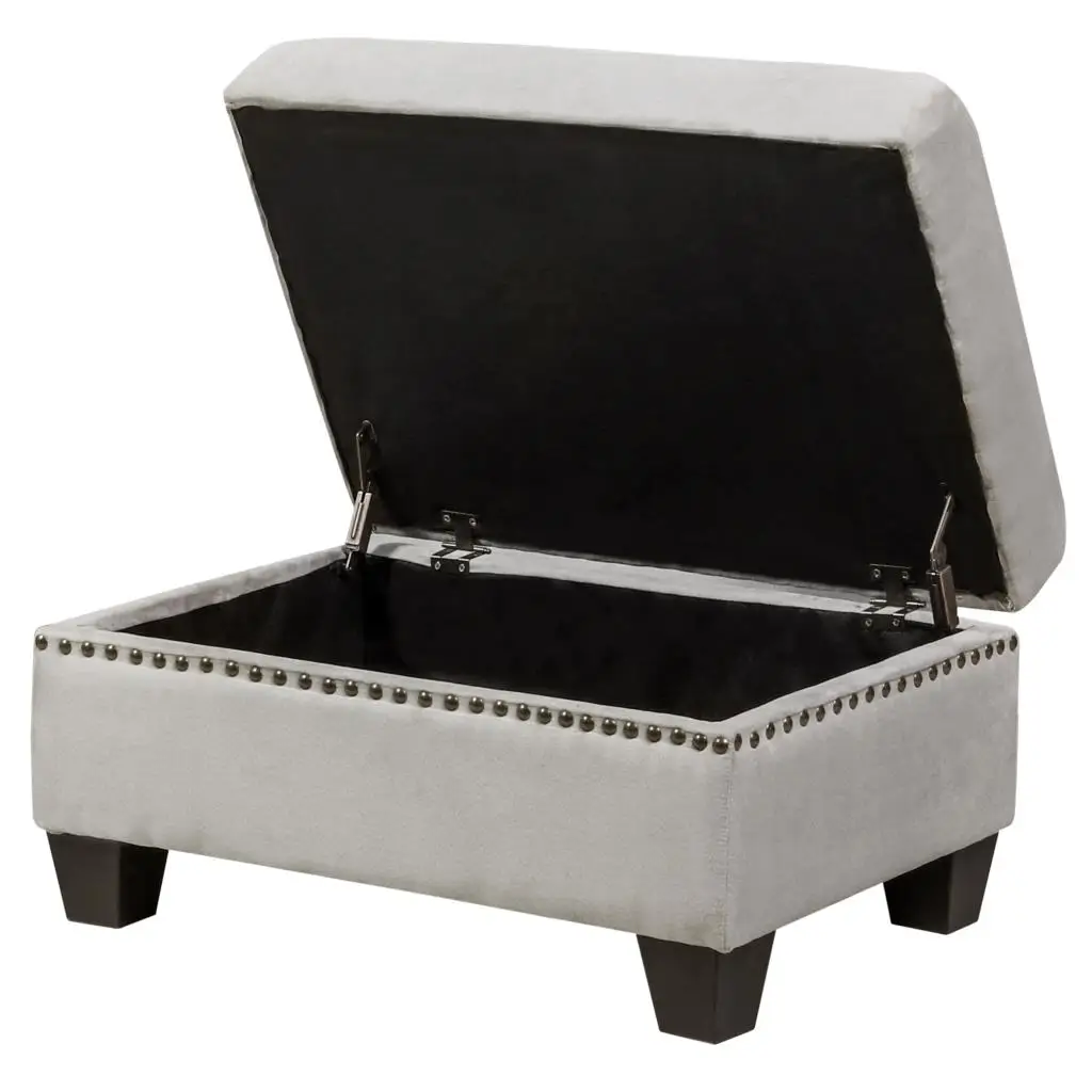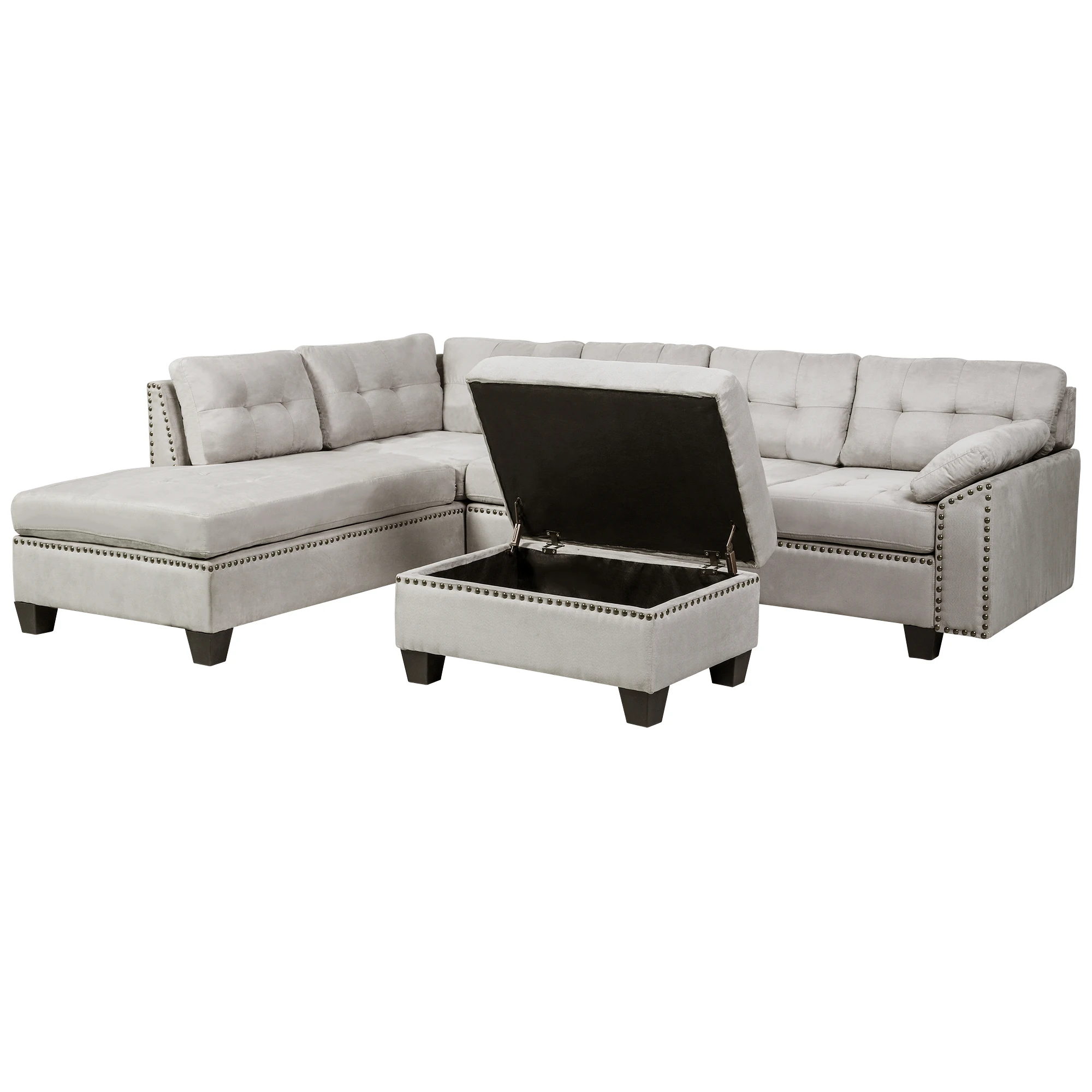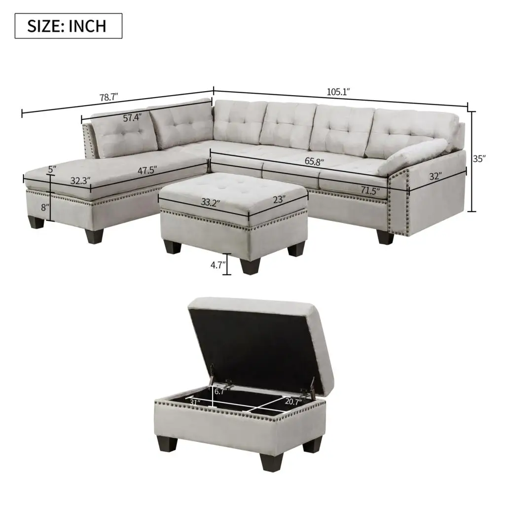 Sectional Sofa Set With Chaise Lounge And Storage Ottoman Nail Head Detail Grey