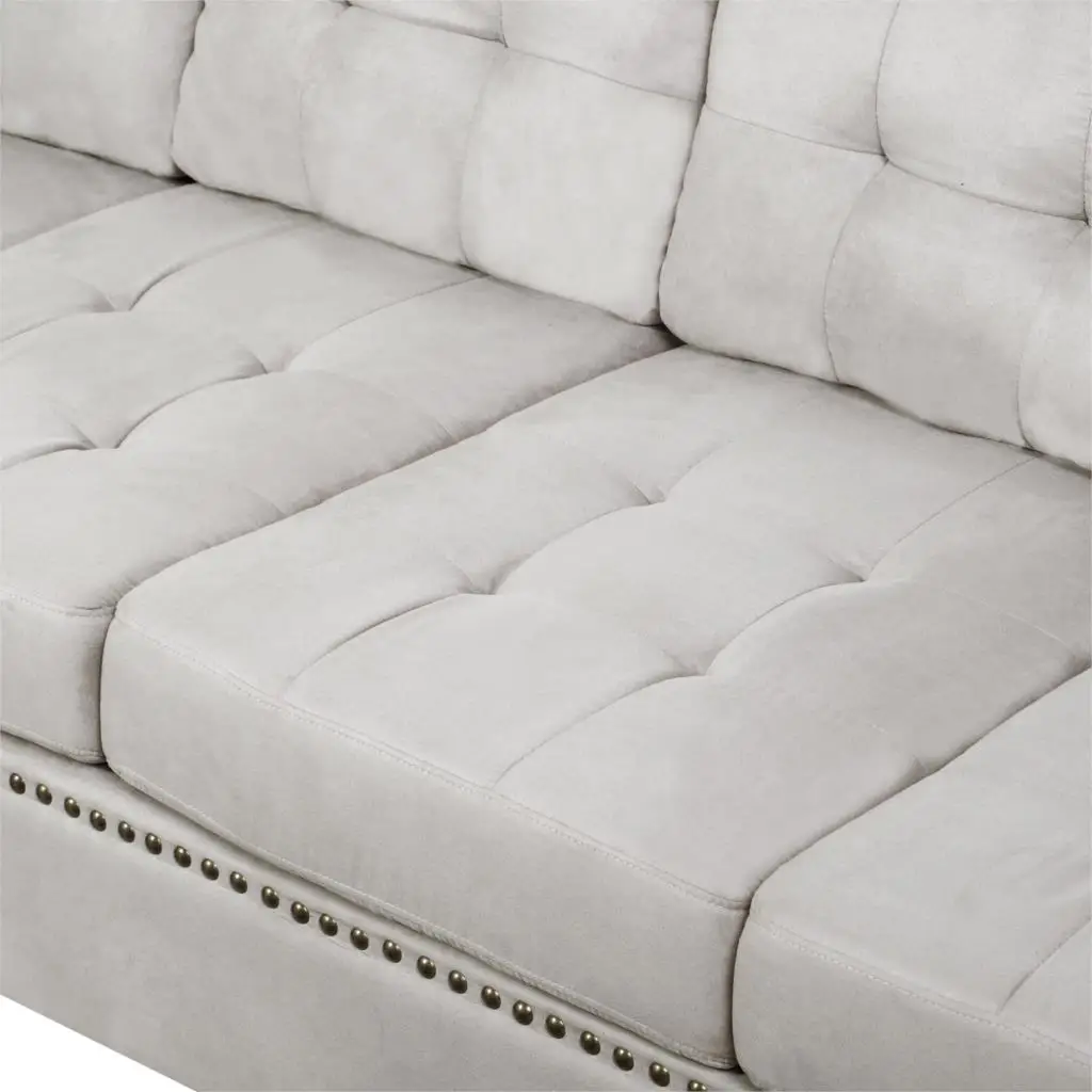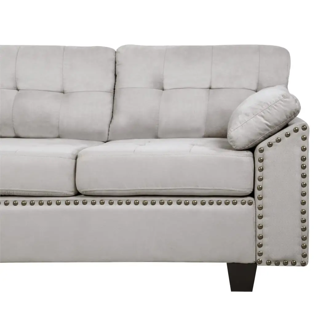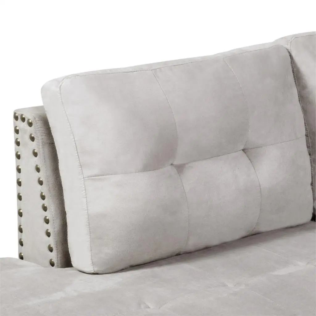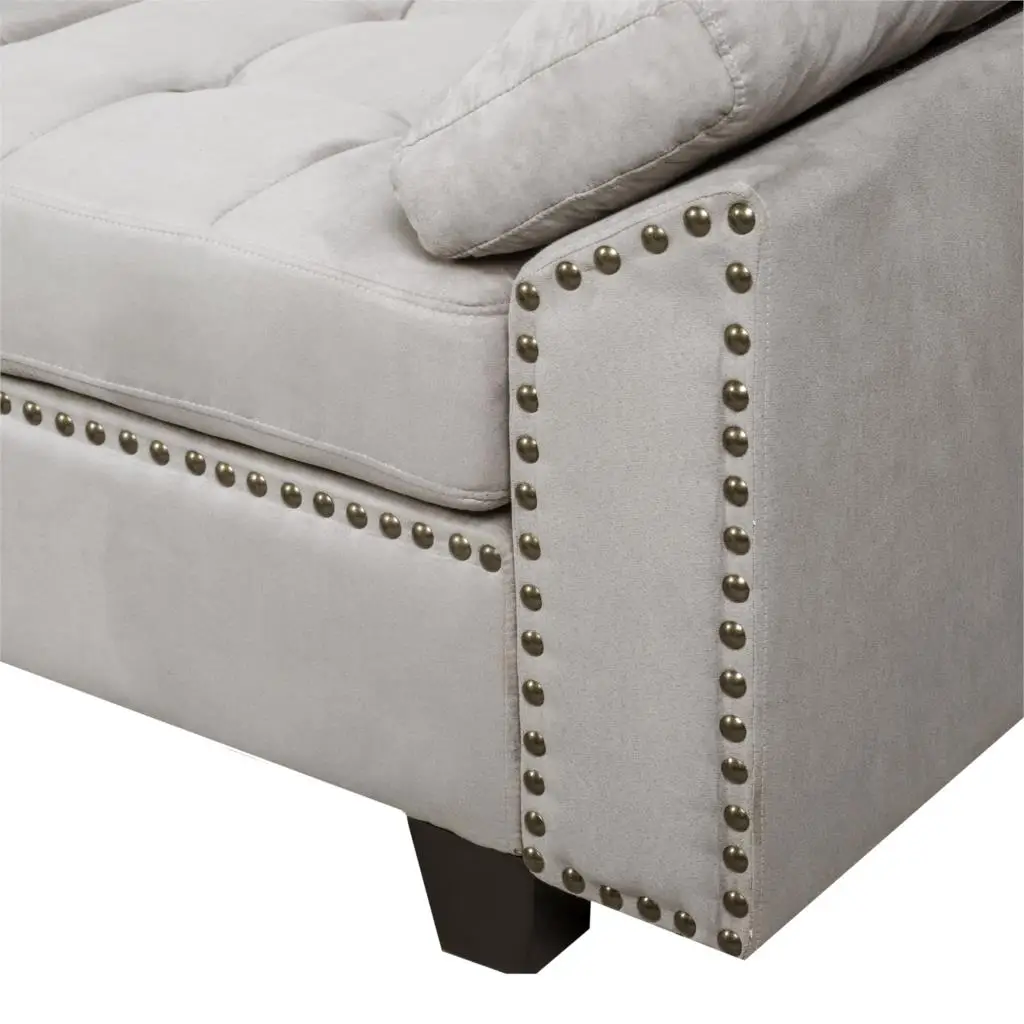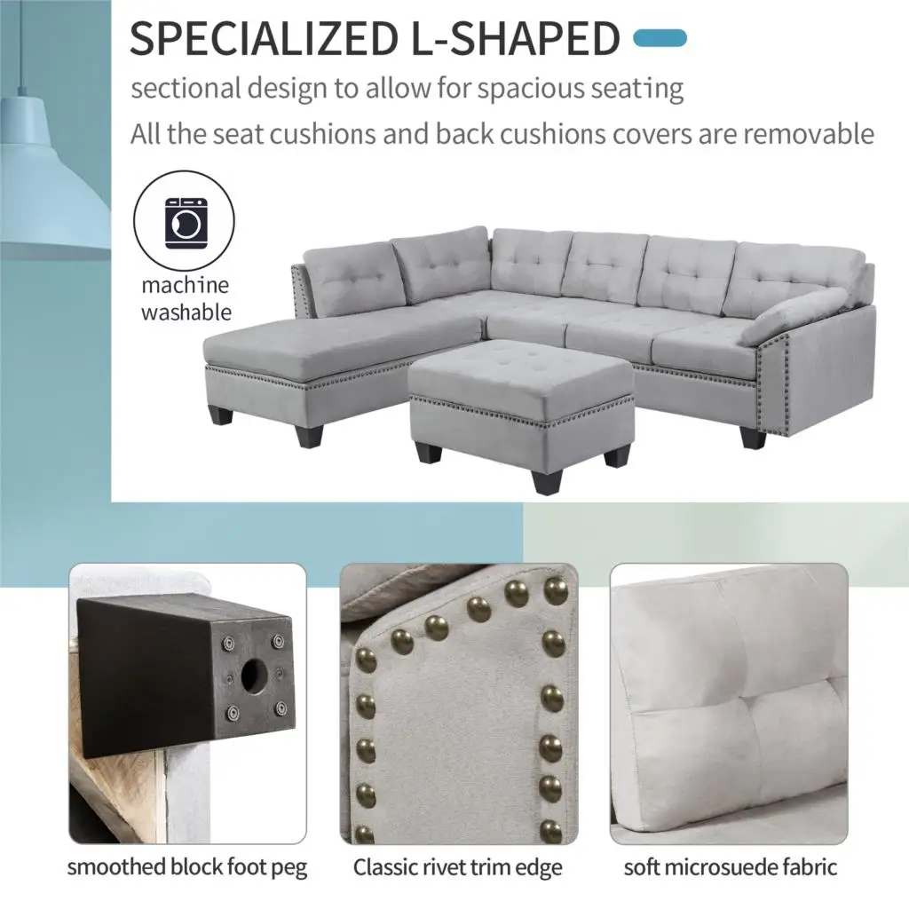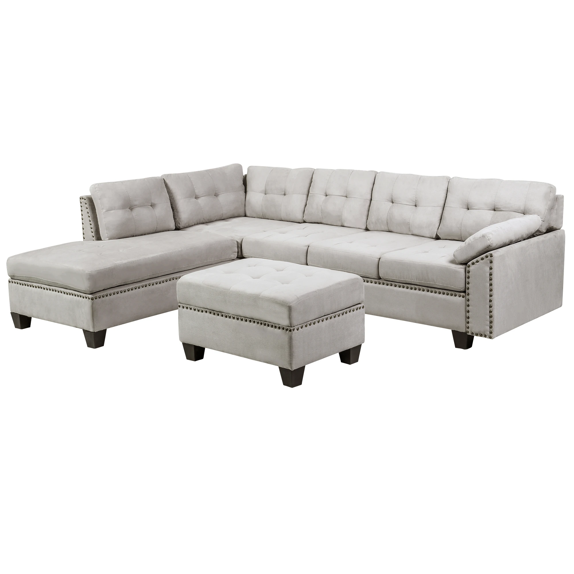 Sectional Sofa Set With Chaise Lounge And Storage Ottoman Nail Head Detail Grey