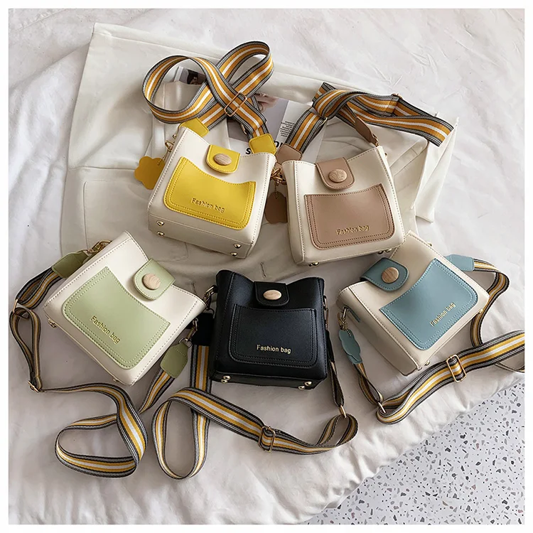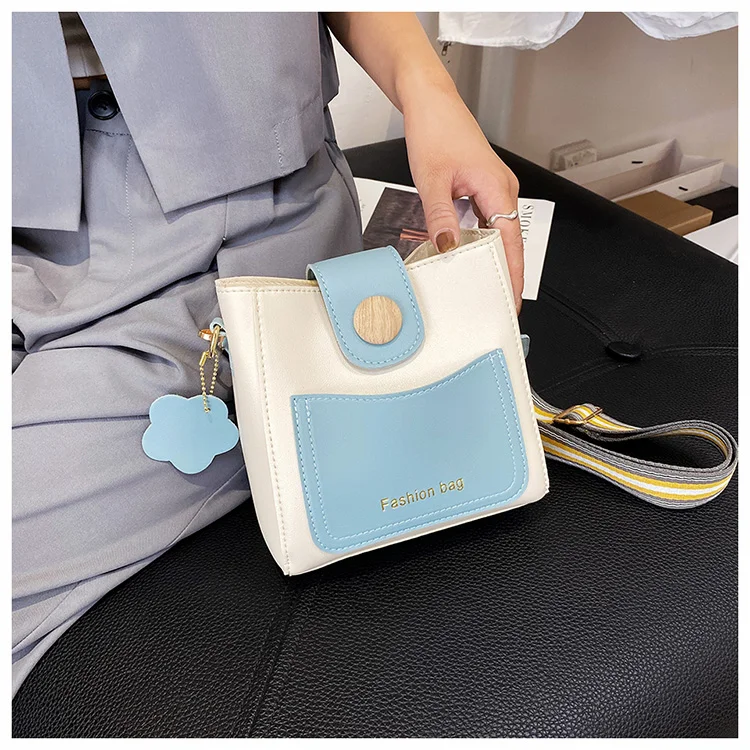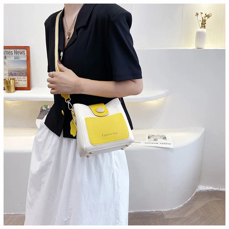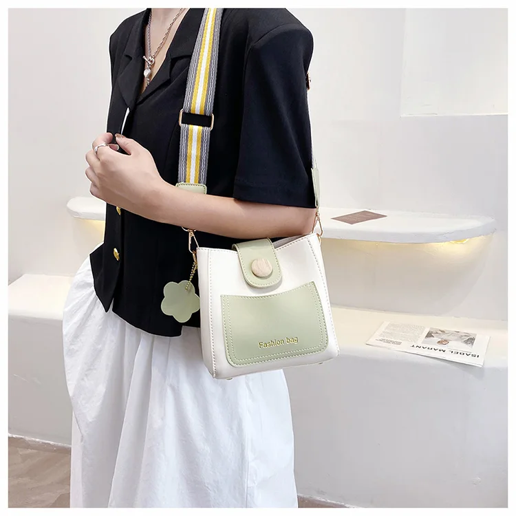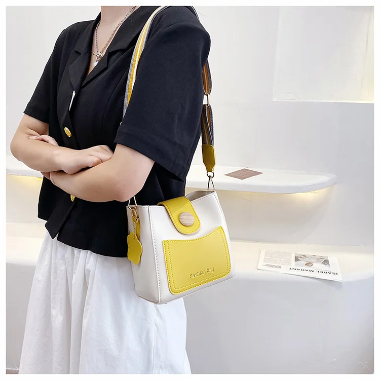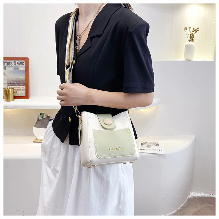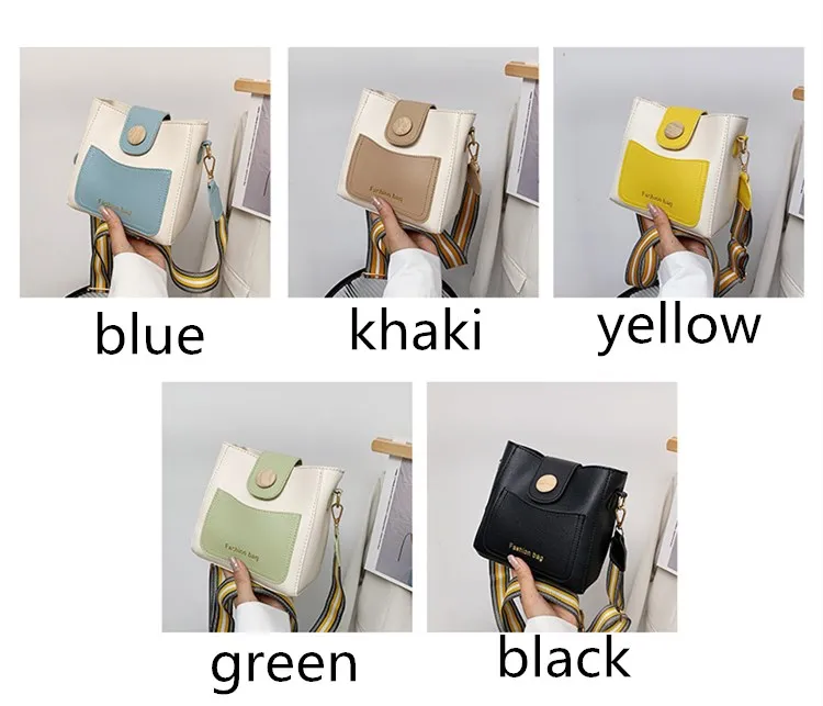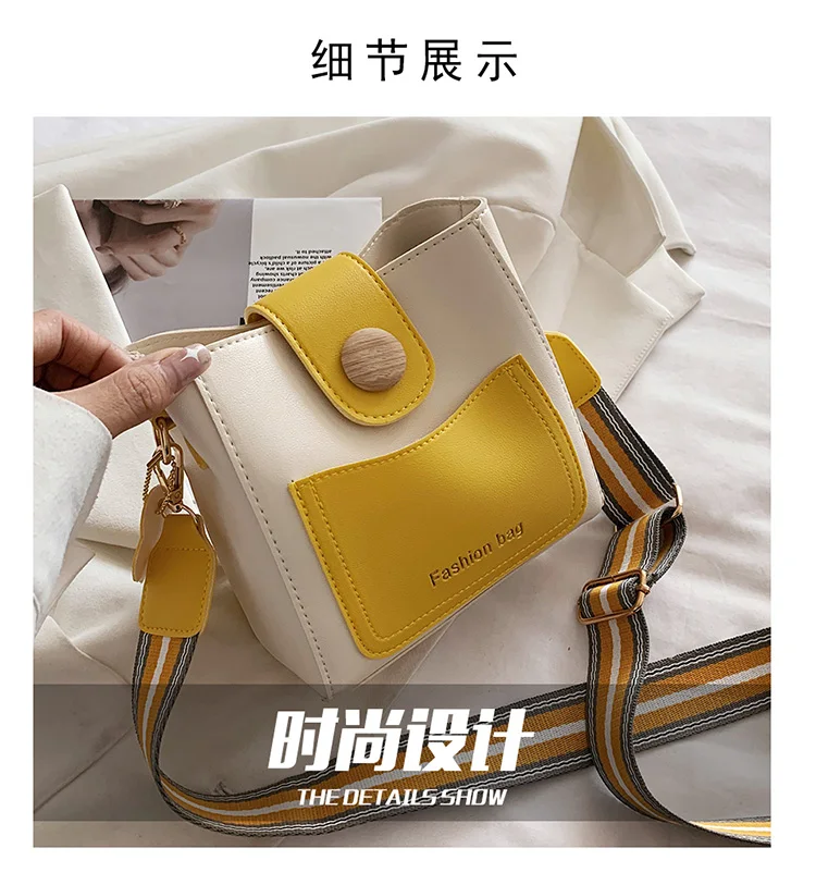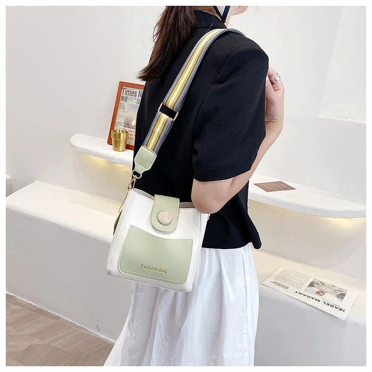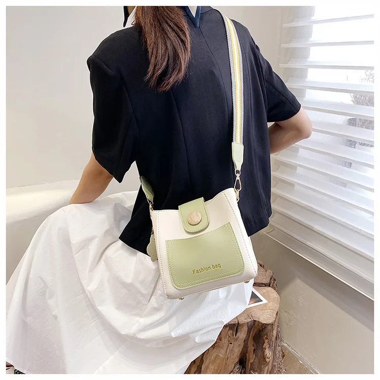 Simple Bucket Women's Bag 2022 Luxury Panelled Crossbody Bags Female Trending Leather Small Handbags Wide Shoulder Bags New Sac
