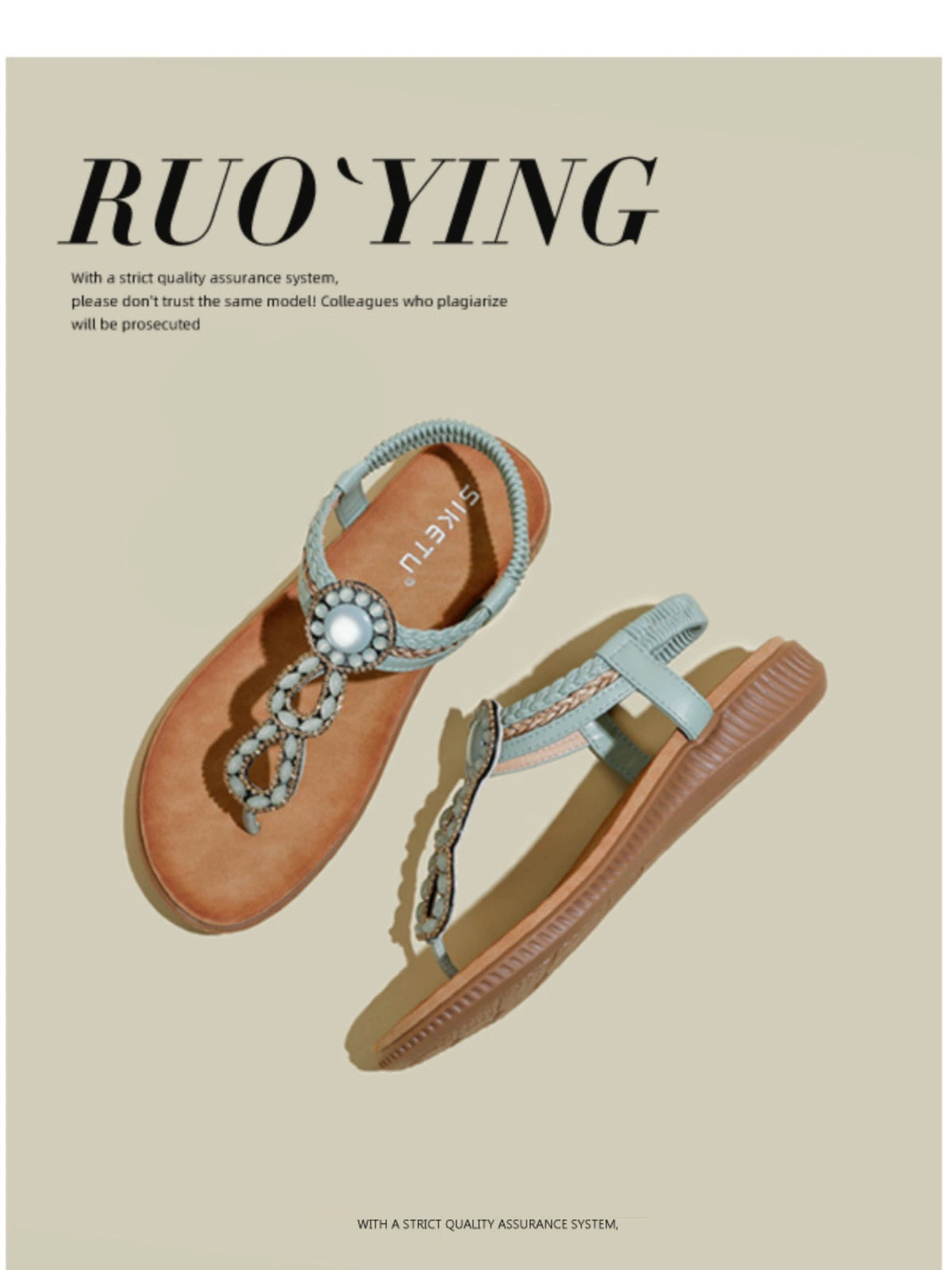 Thick Sole Vacation Travel Beaded 41-43 plus Size Sandals