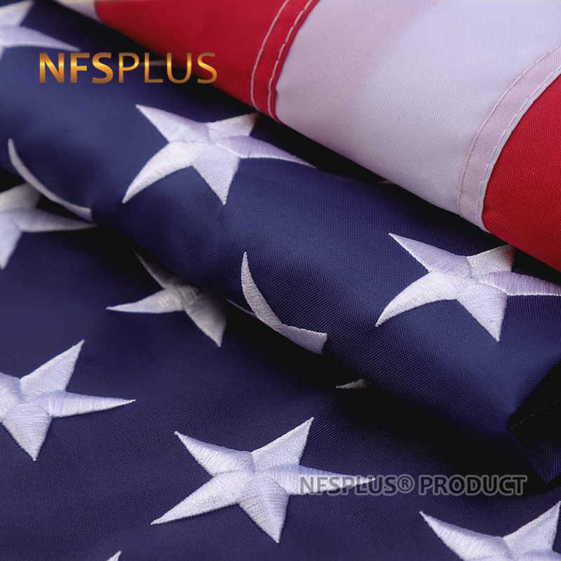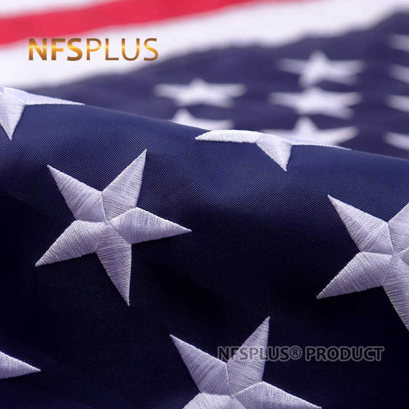 Feature: 50 embroidered star,13 sewn stripes and 2 brass grommets