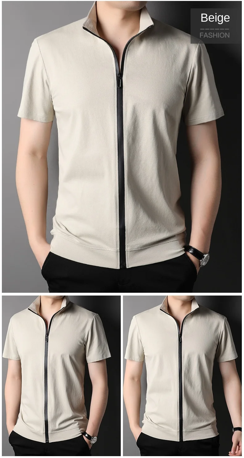Top Grade New Summer Brand Designer Tops Trendy Cool Men Tshirt With Zipper Solid Color Short Sleeve Casual Fashion Men Clothes