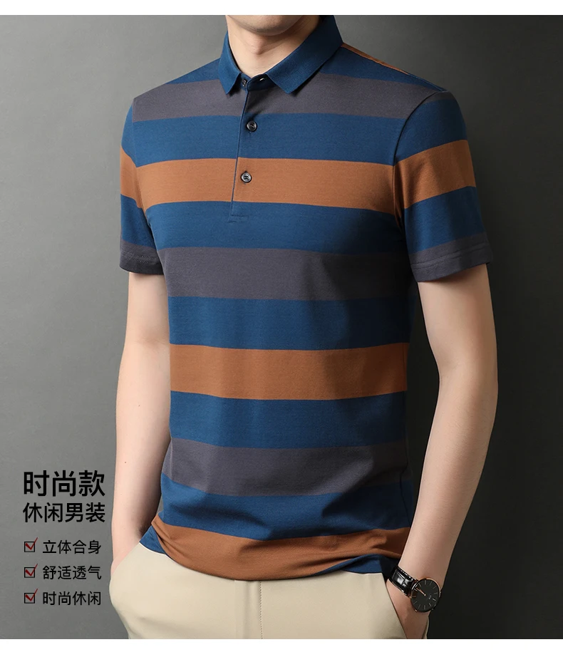 Top Grade New Summer Brand Striped Cotton Spandex Mens Designer Polo Shirts With Short Sleeve Casual Tops Fashions Men Clothing