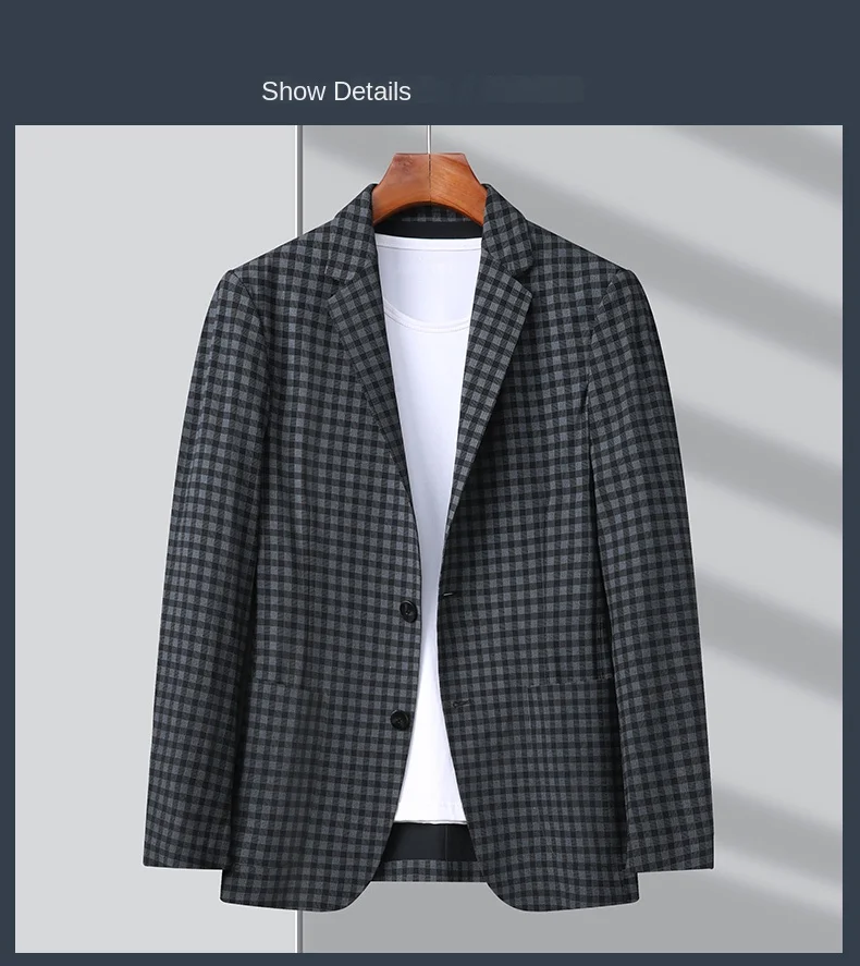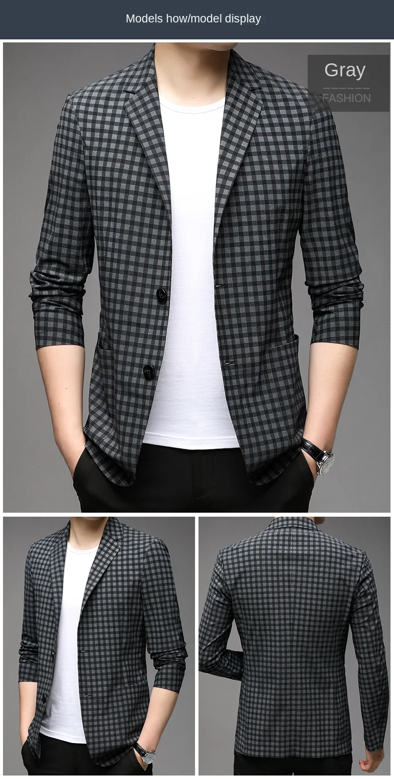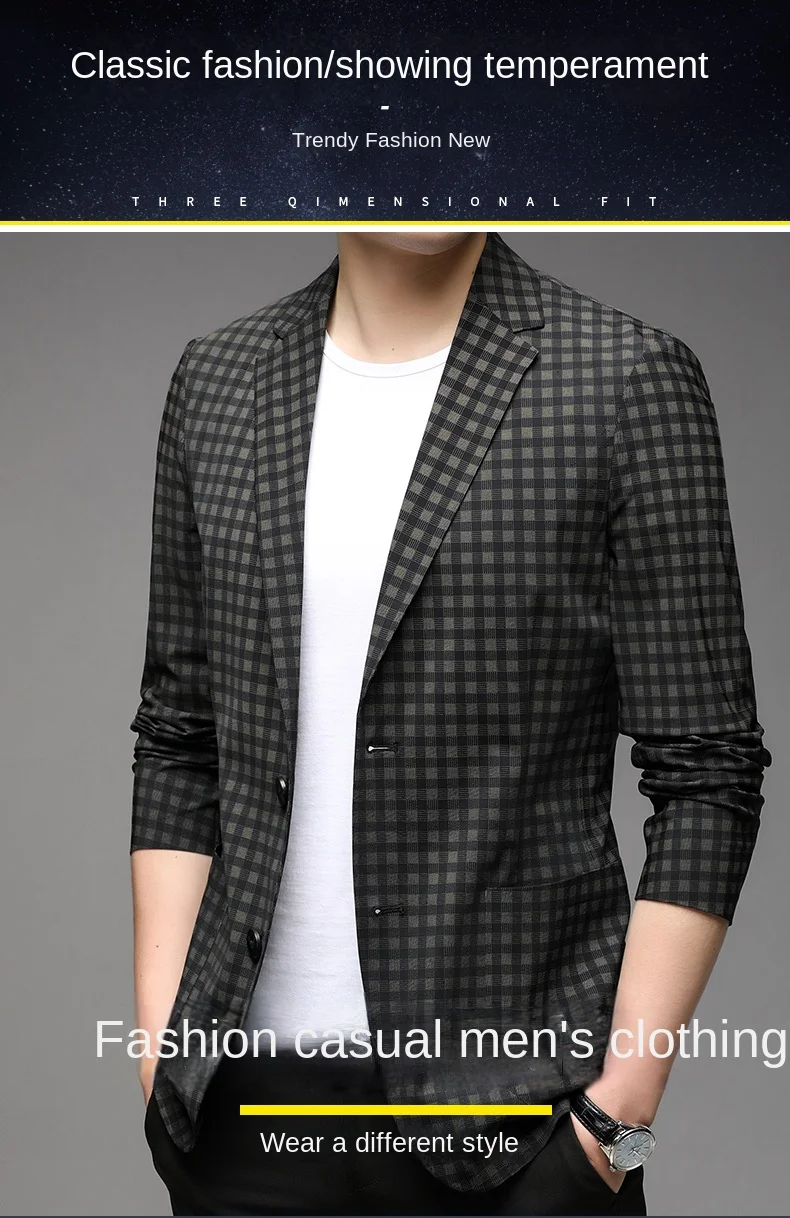 Top Grade Traceless Classic Expensive New Brand Casual Fashion Designer Suit For Men Blazer Jacket Plaid Coat Men's Clothing