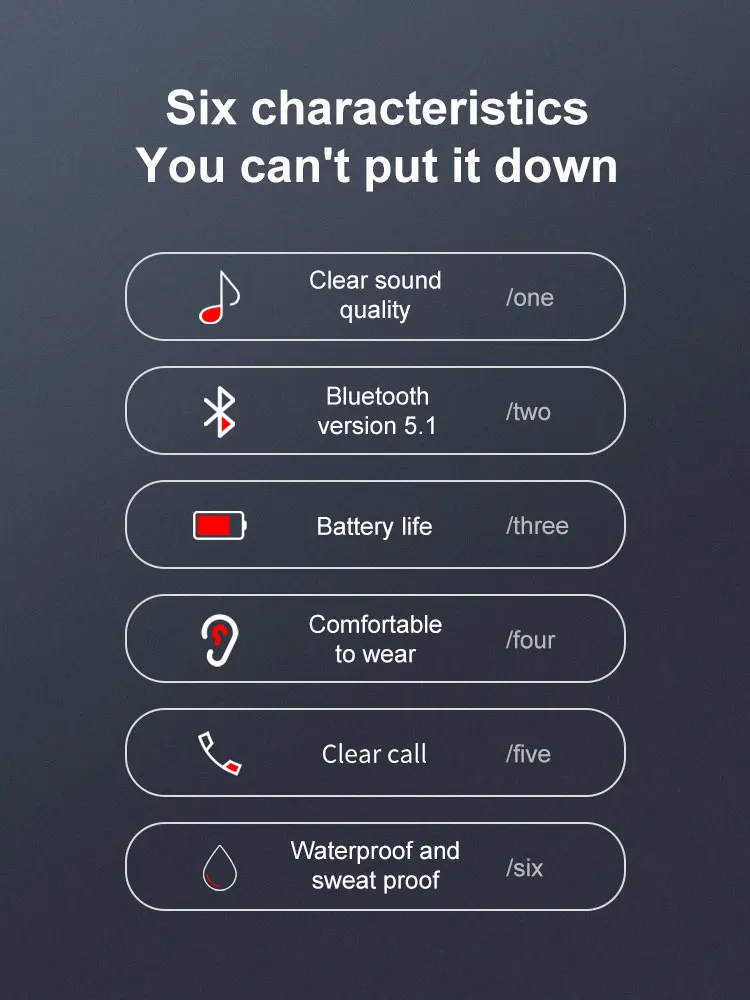 Features 5: ecouteur blutooth + ecouteurs sans fils + fone bluetooth
