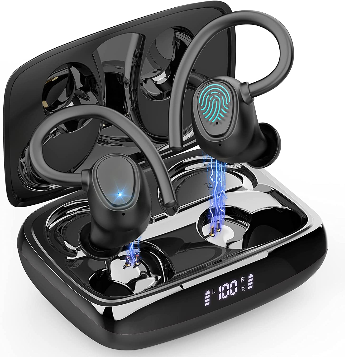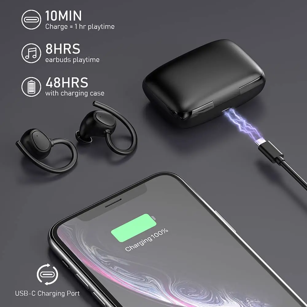 2,400mAh charging case can full charge 2 earphones around 4 times, offer more 50 Hours musci time