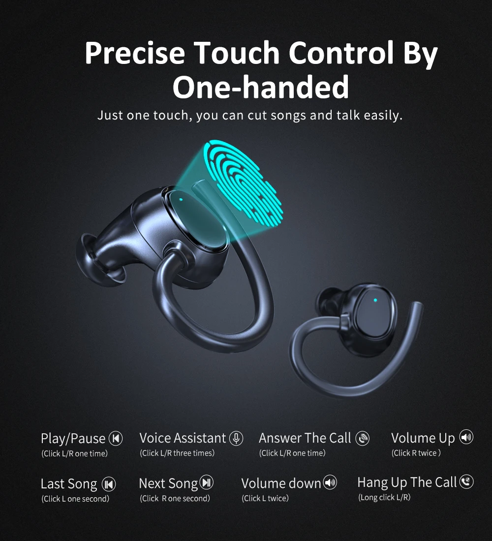 4, Popular touch control function, support switch songs, phone call and call voice assiatant.