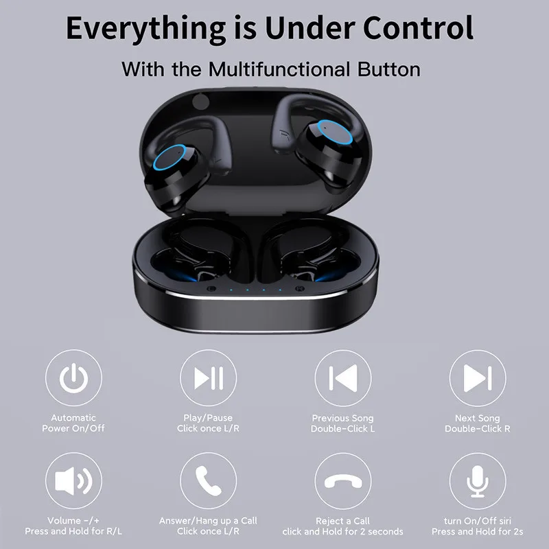 TWS Bluetooth Earphones Touch Control Wireless Headphones with Microphone Sports Waterproof Wireless Earbuds 9D Stereo Headsets