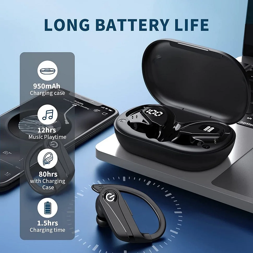 TWS Sports Earbuds Bluetooth 5.3 HIFI Bass Wireless Headphone LED Display Handsfree Earphone Noise Cancelling Waterproof Headset