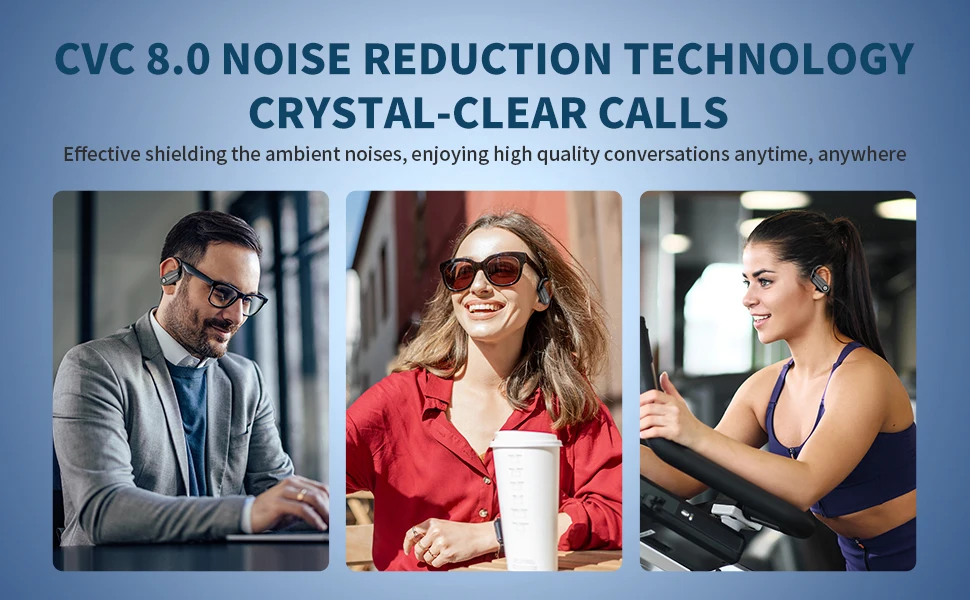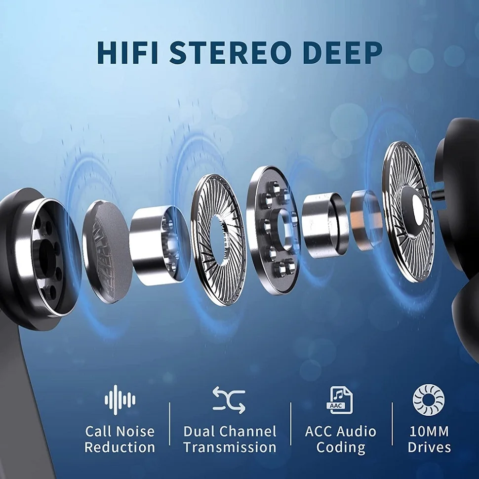 【HiFi stereo sound quality and CVC8.0 noise reduction】 the running earphones with Bluetooth 5.3 chip technology with high-quality dynamic 10 mm drivers for a clear and smooth connection, stable signal and low power consumption for calls. The CVC8.0 noise cancellation allows the in-ear microphone to reduce background noise