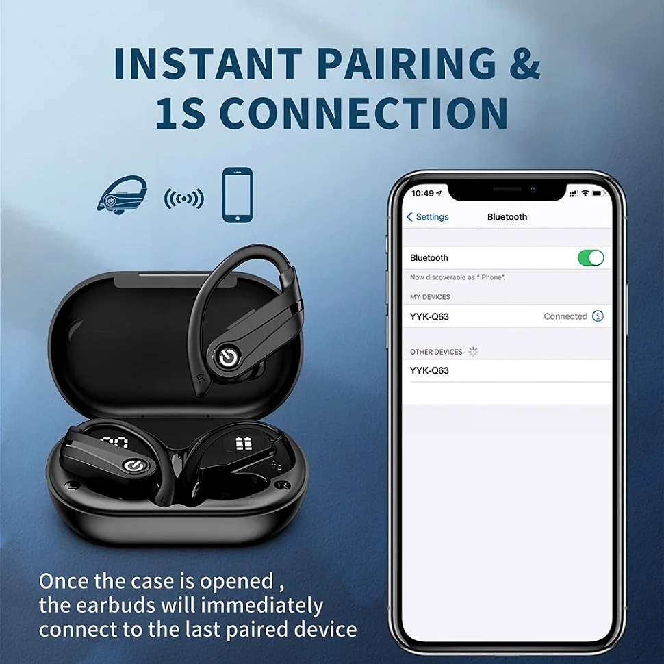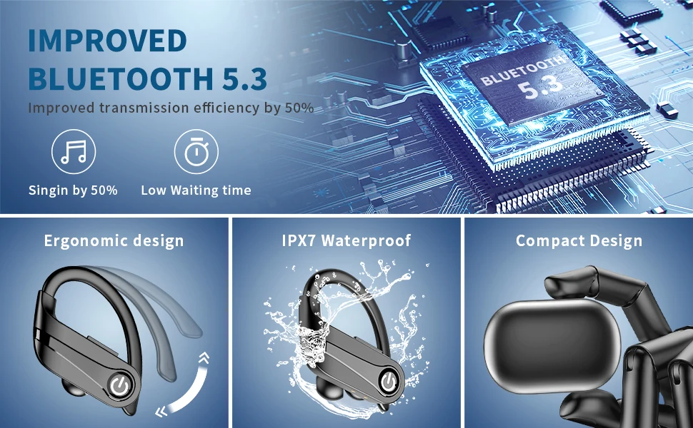 【Bluetooth V5.3 technology and automatic pairing】equipped with the latest Bluetooth 5.3 technology, the wireless Bluetooth earphones have a more stable connection