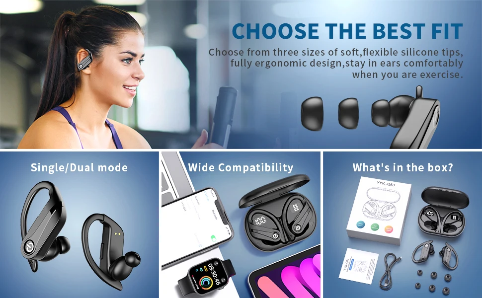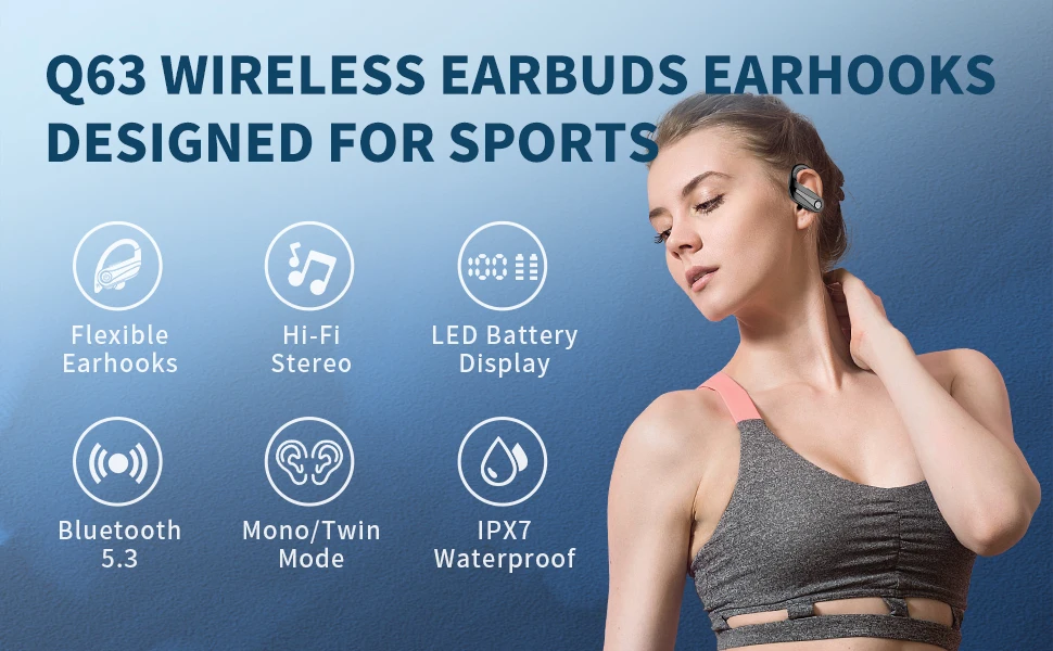 【Comfortable to wear and IPX7 waterproof】】the included soft ear hooks have been specially designed to fully adapt to the contours of your ears. In addition, the IPX7 waterproof sports headset can easily withstand heavy rain or sweat during intense training and in any weather.