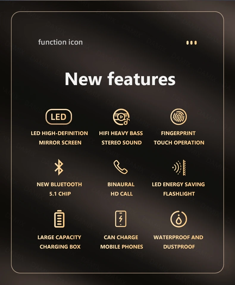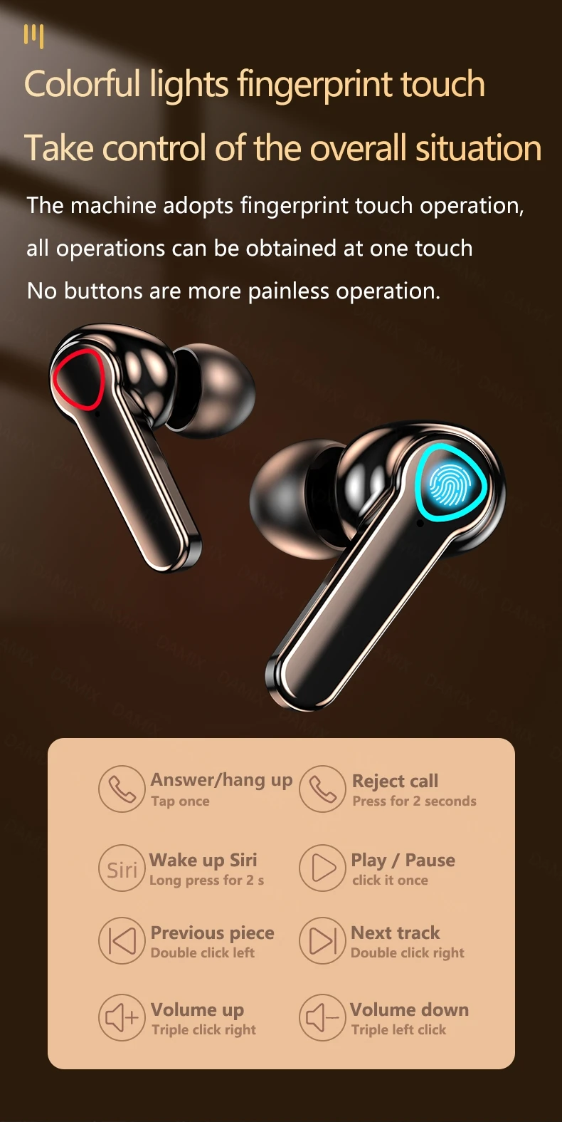 TWS Sports Wireless Headphones with Mic IPX5 Waterproof LED Display 9D Stereo Bluetooth 5.1 Earbuds Headsets for Phone