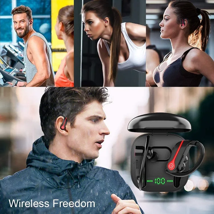 【IPX7 waterproof and ergonomic design】: the IPX7 water protection class ensures that your headphones are completely protected against moisture and water splashes. Wireless earphones are designed with soft, flexible and secure-fit ear hooks aimed at fully fitting your ears without falling out even for intense workouts. Perfect for running, yoga, fitness, cycling, etc.