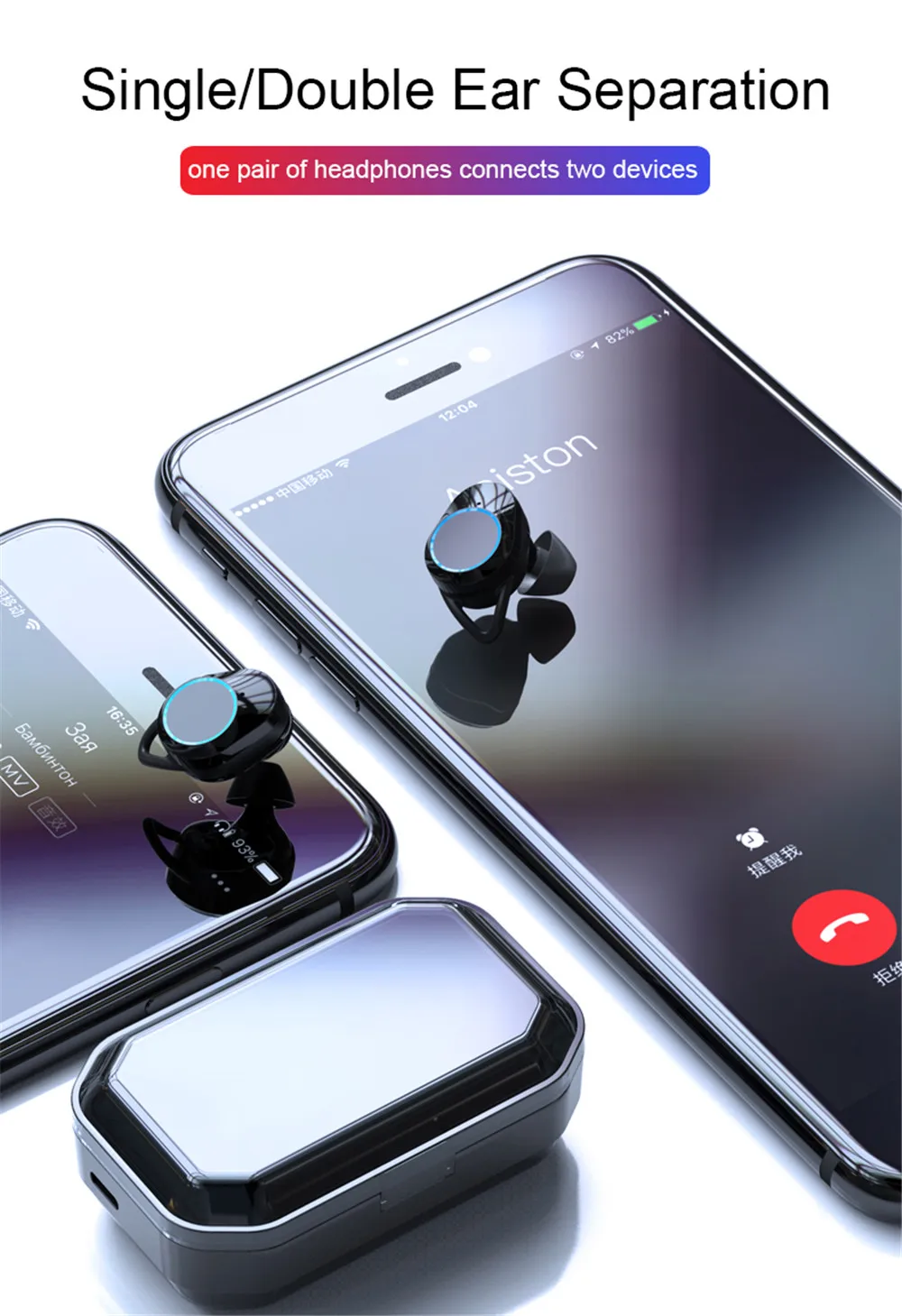 TWSearphone G02 Wireless Headphones 7000mAh Capacity Smart Power Bank Earphones 9D Stereo Earbuds With LED Display Earpieces NEW