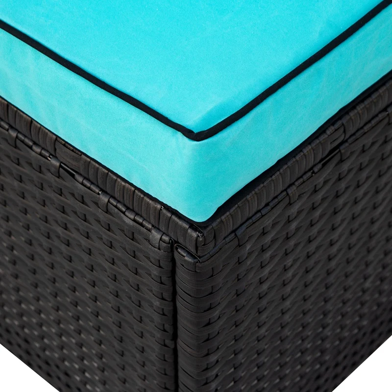 Manufactured from premium water resistant rattan wicker to ensure the longevity of your sectional, this piece is capable of resisting wear and tear from weather and UV rays. The strengthened legs support up to 308lbs for each seat while the cushions edges are double stitched and secured with black fabric piping for increased durability.