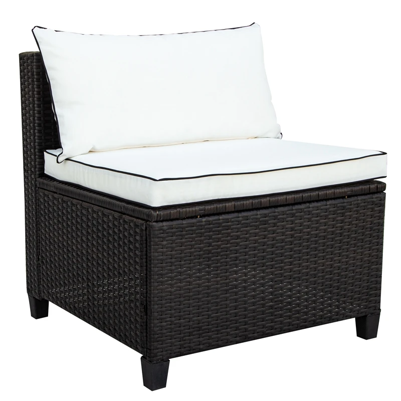 Each piece in this furniture set features a woven rattan frame for a natural organic essence in your outdoor space. The sleek and simple silhouette makes this piece an asset to any outdoor surrounding.