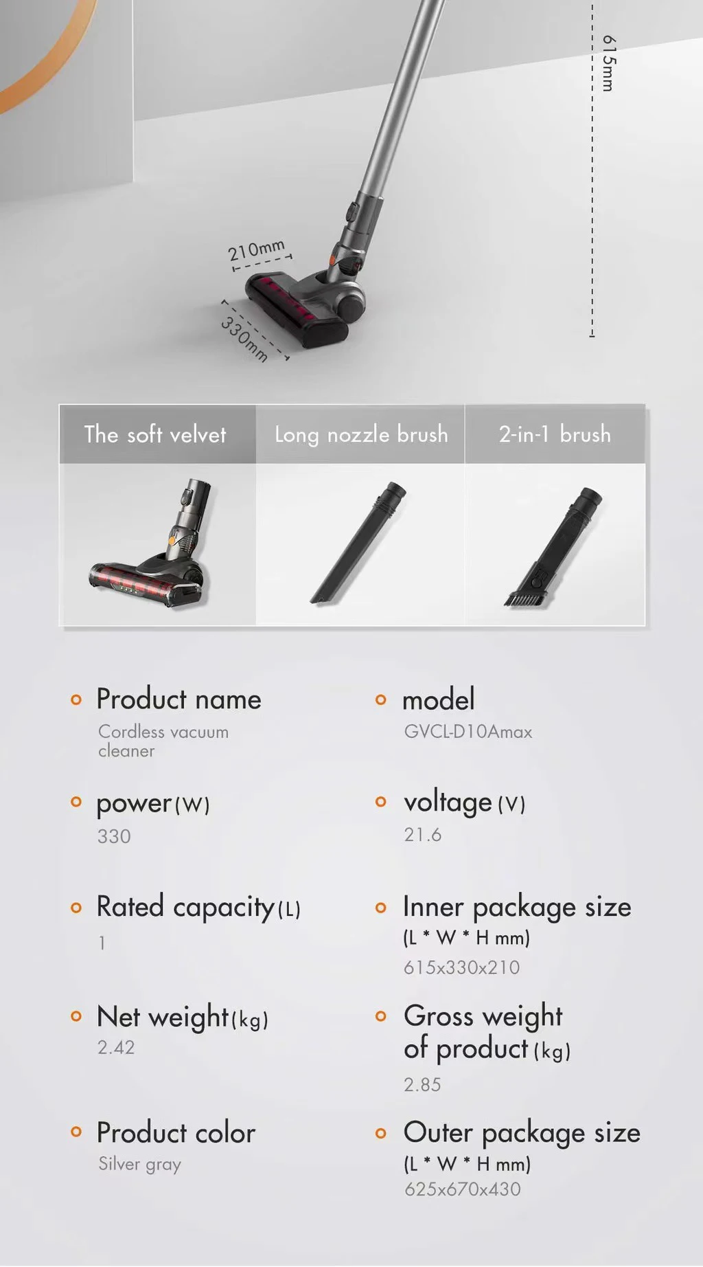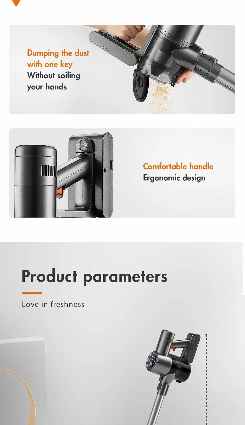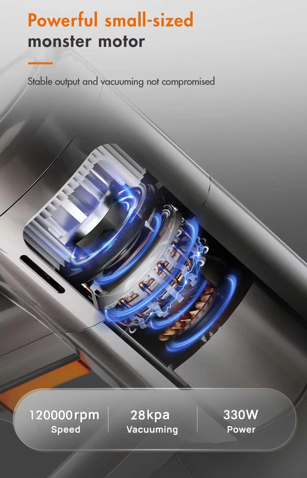 Brushless motor spins up to 120,000rpm, generating 28kPa strong suction. Equipped with powerful
