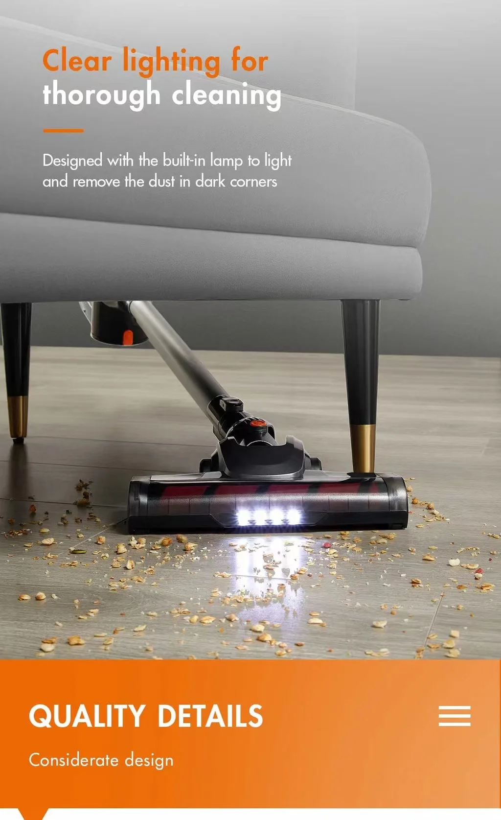 motorized floor head with LED headlights, detect the particles you can't normally see.