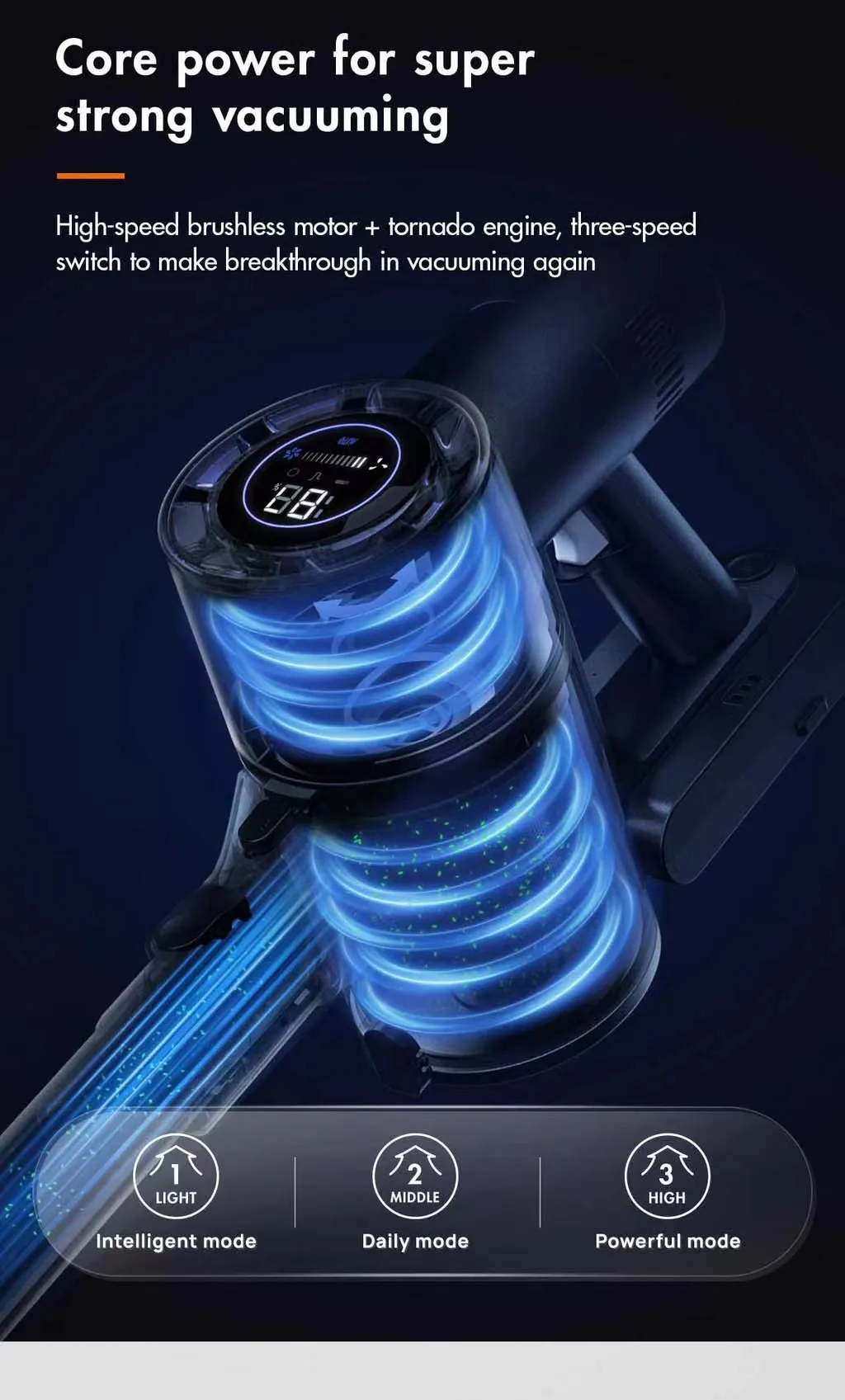【Max 28KPa Powerful Suction 】: This wireless vacuum cleaner can be switched between 3 modes: