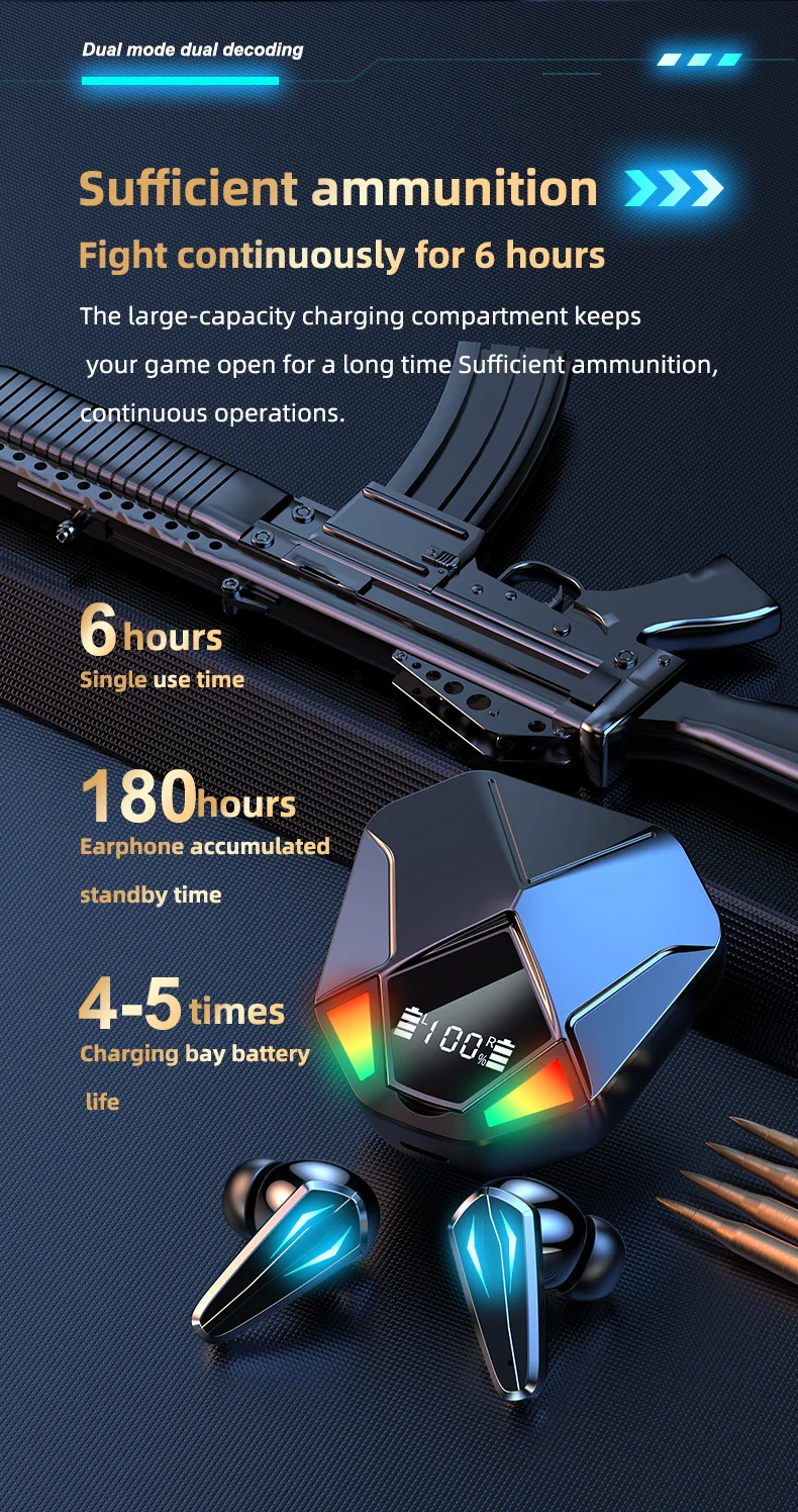 V5.1 X6 TWS Wireless Headphones with Microphone Gaming Headsets Low Latency Sound Quality Noise Cancellation Gamer Earbuds