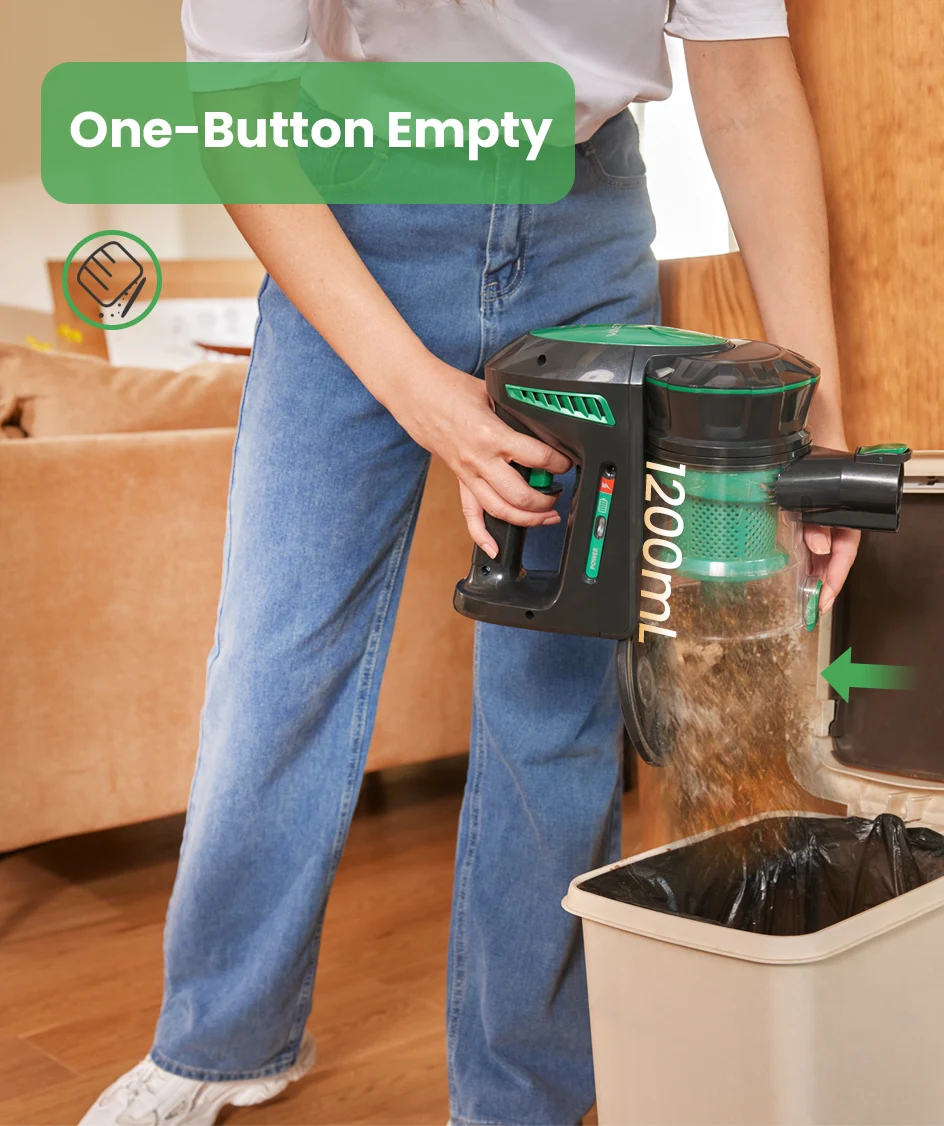 【Low Maintenance】A large dustbin of 1.2 liters means you can clean longer with less interruption. Empty the dustbin with a single touch of a button. Drop the vacuum in a wall-mount dock after cleaning. Grab and go whenever you need. Vactidy cordless vacuum provides 24 months warranty free.