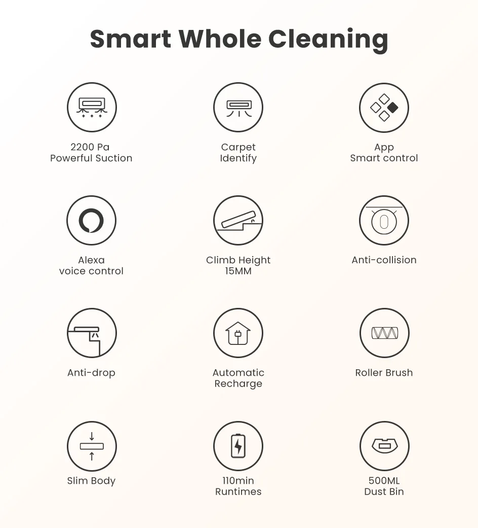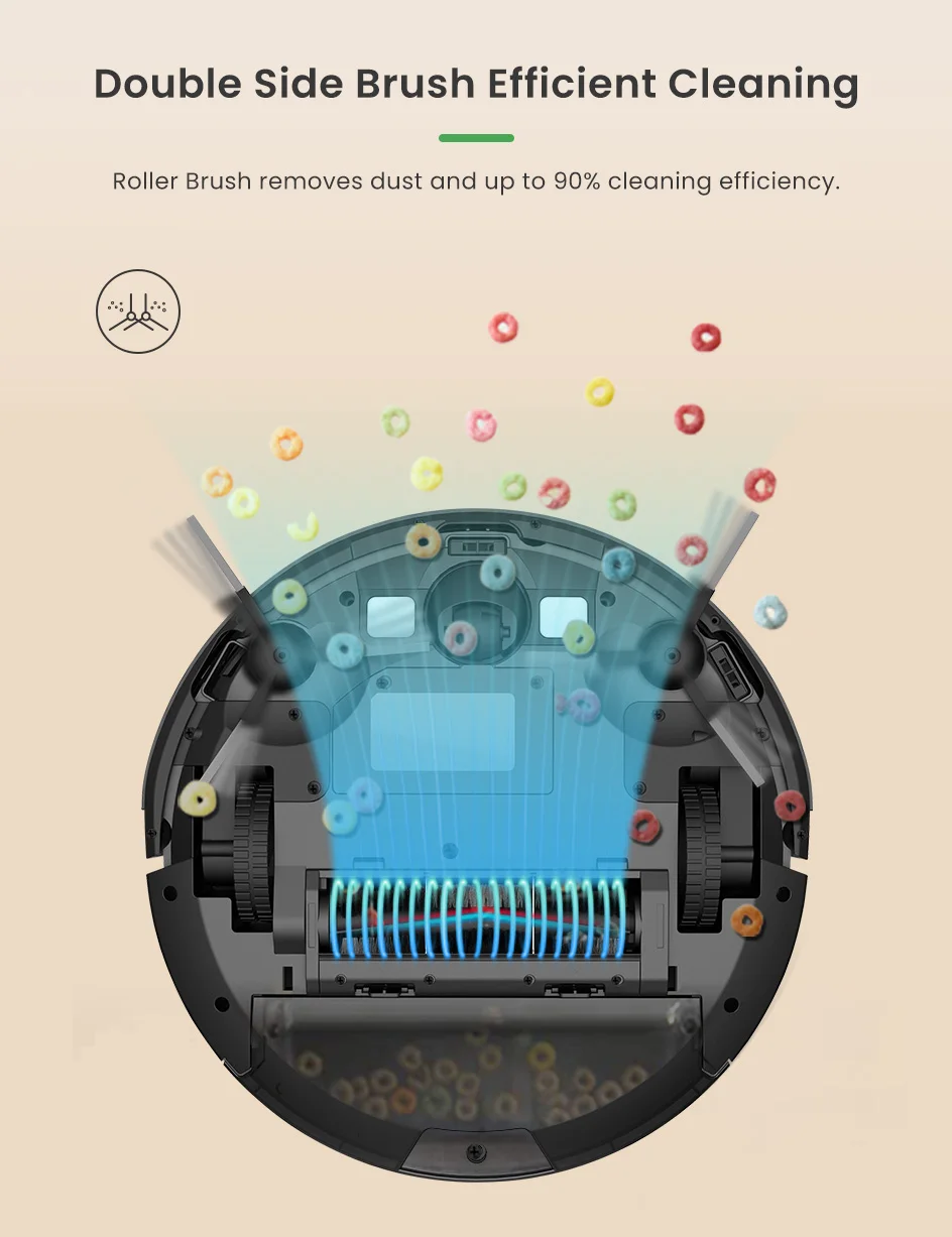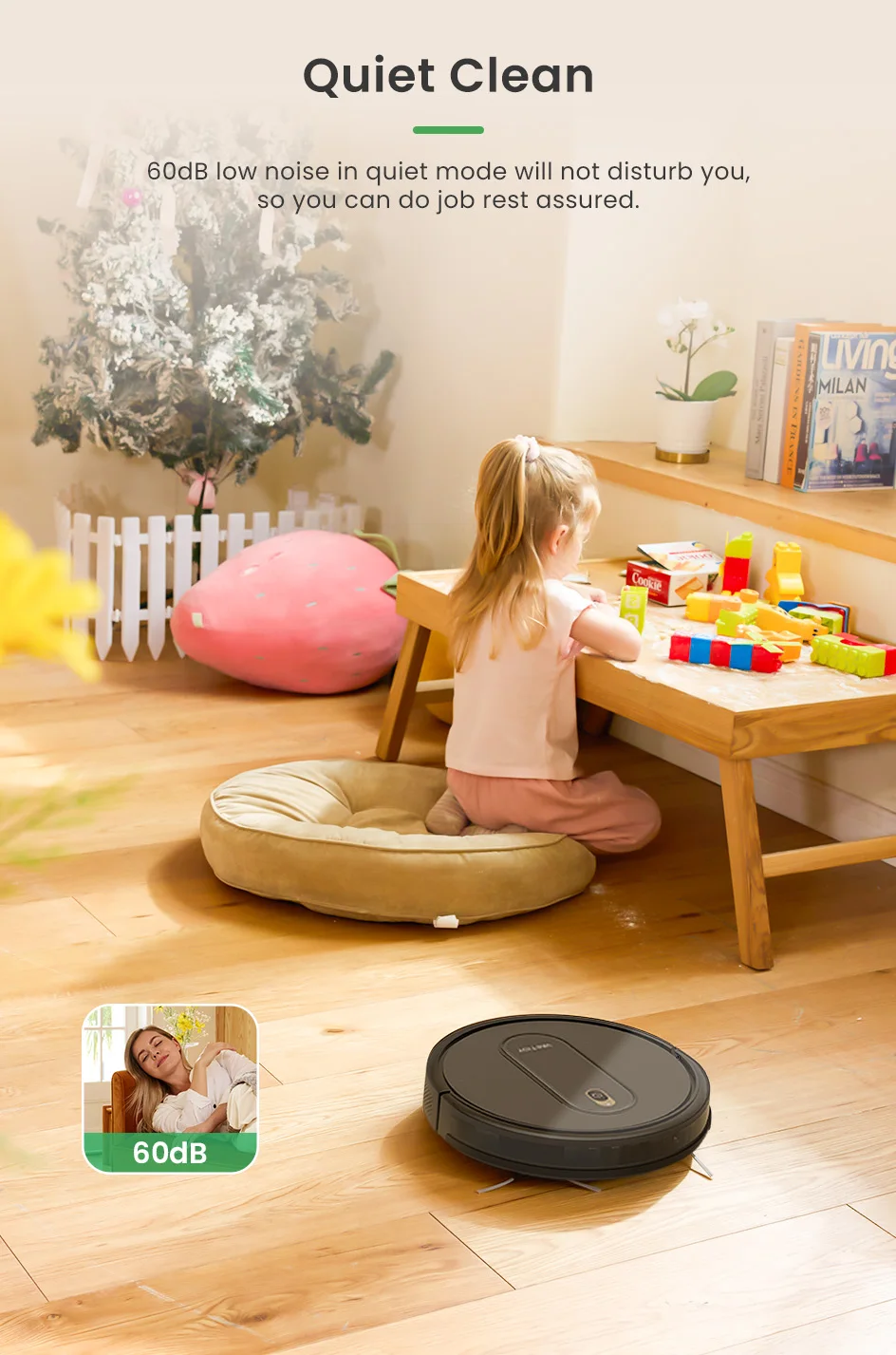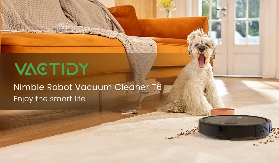 【Powerful Suction with Ease】With up to 2200Pa strong suction in max mode, Vactidy T6 robot vacuum can pick up dust, debris and pet hairs from hard floor and low-piled carpet with ease, bringing you a high-efficiency clean.