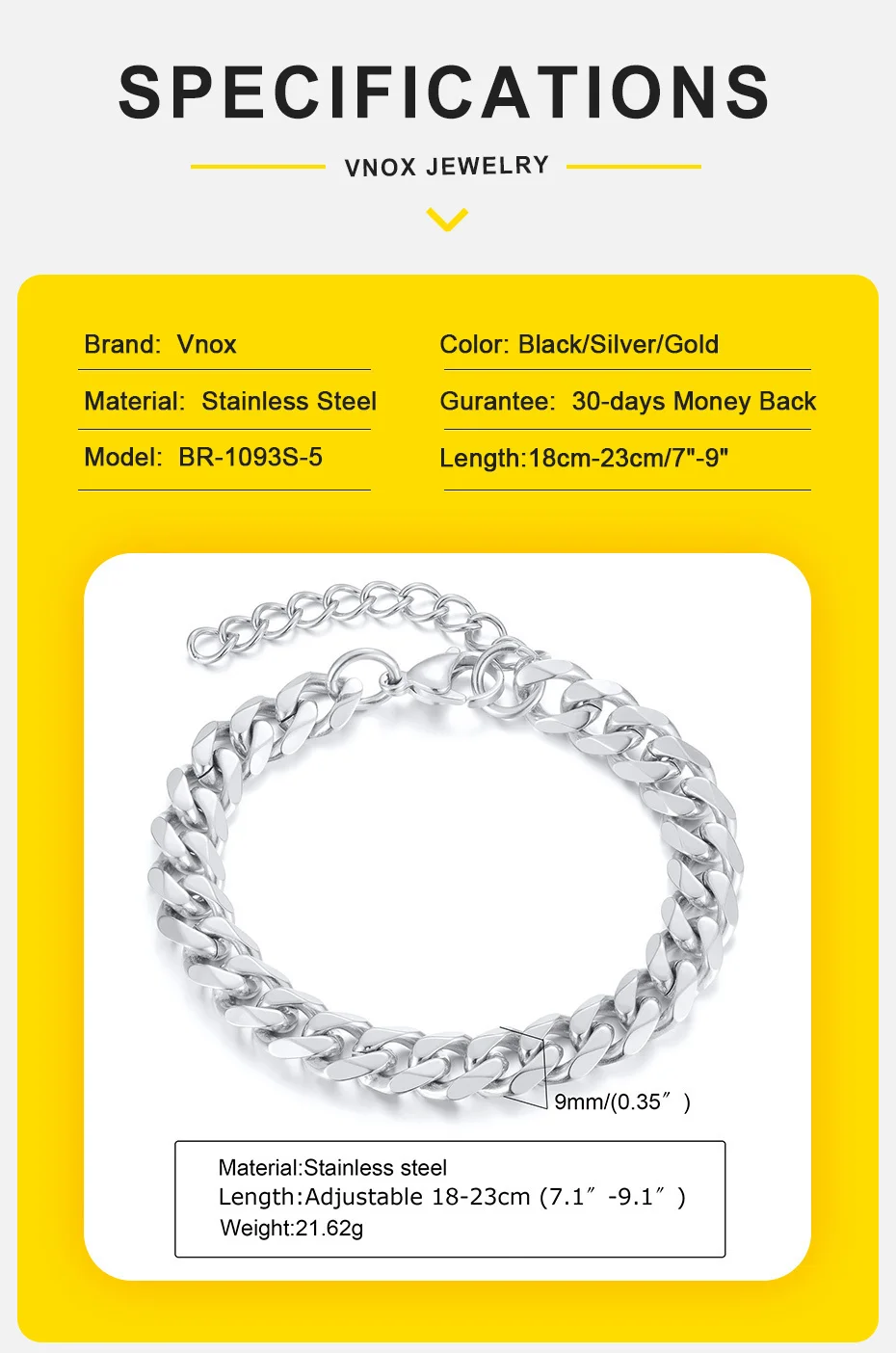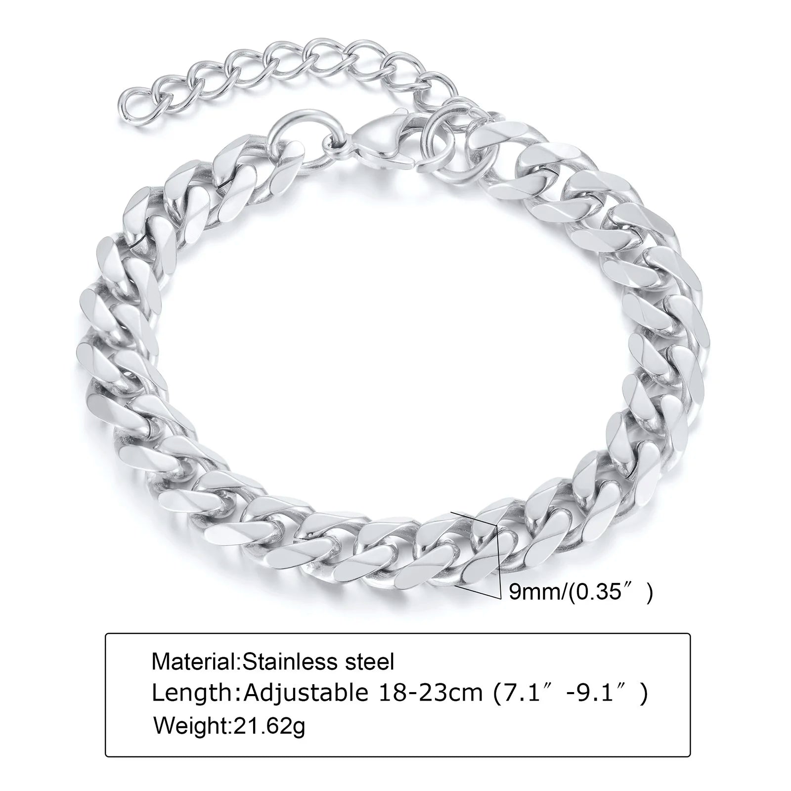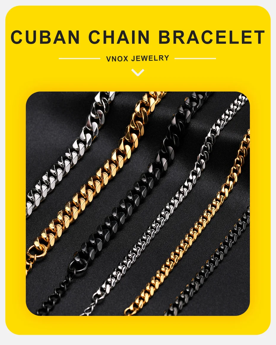 Vnox Basic Cuban Chain Bracelets for Men Women,Classic Stainless Steel 5/9mm Width Link Chain Wristband,Casual Hipster Jewelry