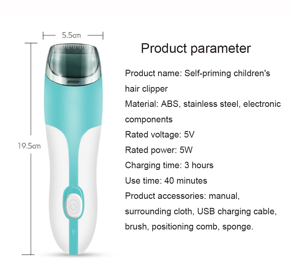 Waterproof Kids Hair Clipper Electric Automatic Gather Trimmer Baby Adult Mute Sleep Cut USB Recharging Home-Use Stainless steel