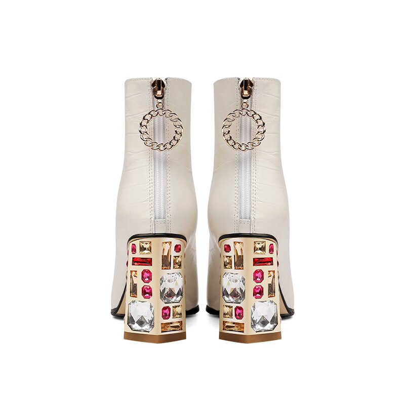 Winter Boots Women Genuine Leather Ankle Ladies Point Toe Short Boots Slip On Zipper Shoes 2022 Black Woman Thick Heel Boots