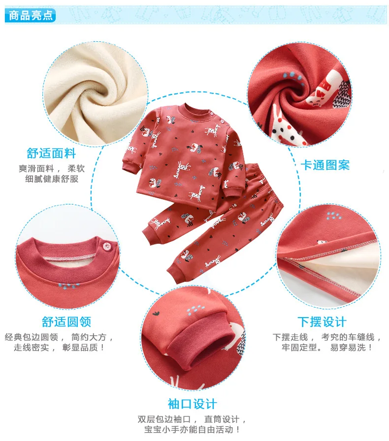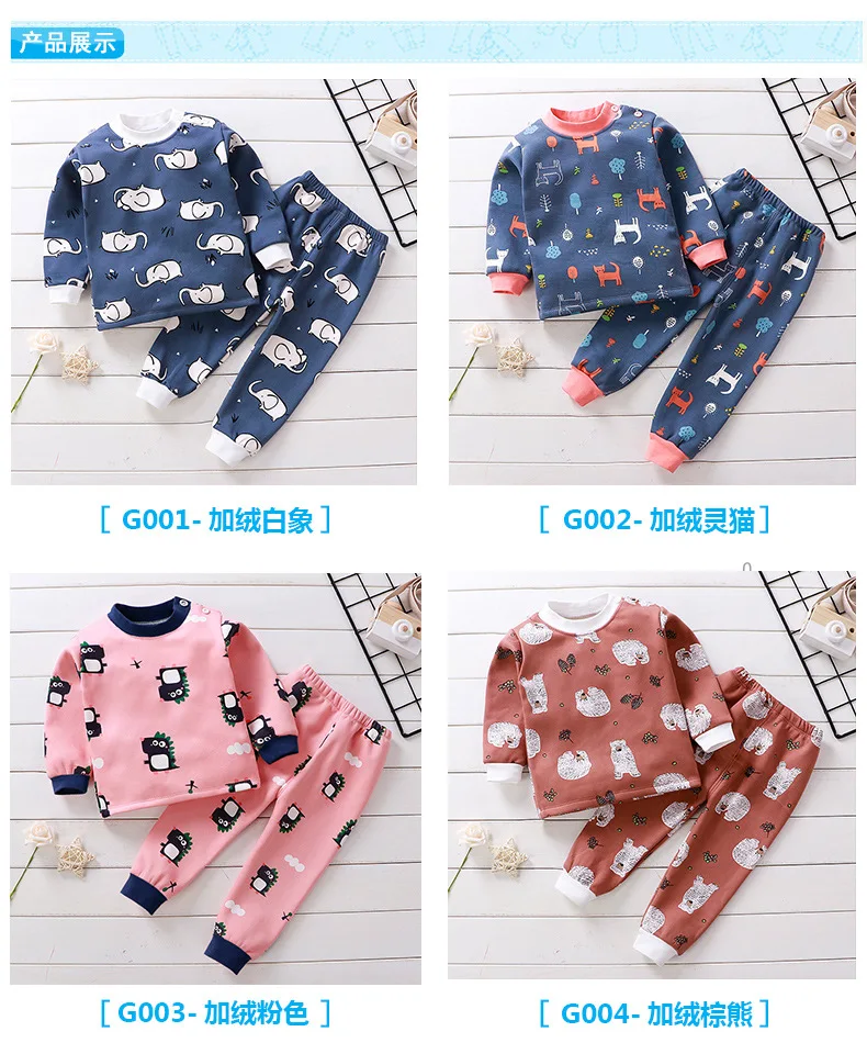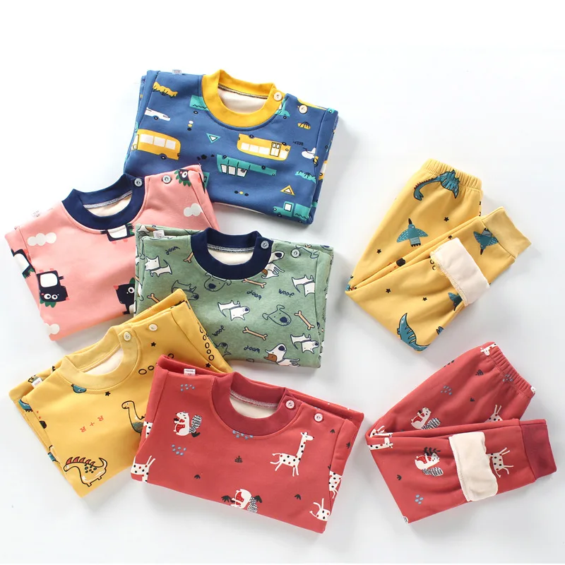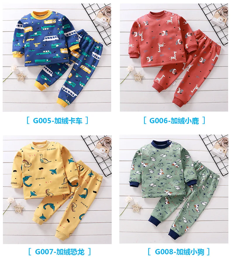 Winter Children Clothing Sets Warm Fleece Pajamas For Boys Girls Thicken Kids Dinosaur Sleepwear Baby Thermal Underwear Pyjamas
