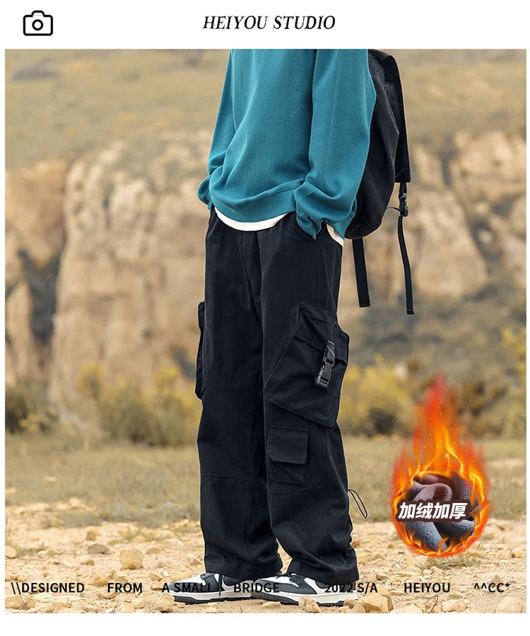 Winter Men's Multi-Pockets Cargo Pants Fleece Warm Thick Military Tactical Cotton Long Trousers Men Cityboy Baggy Casual Pants