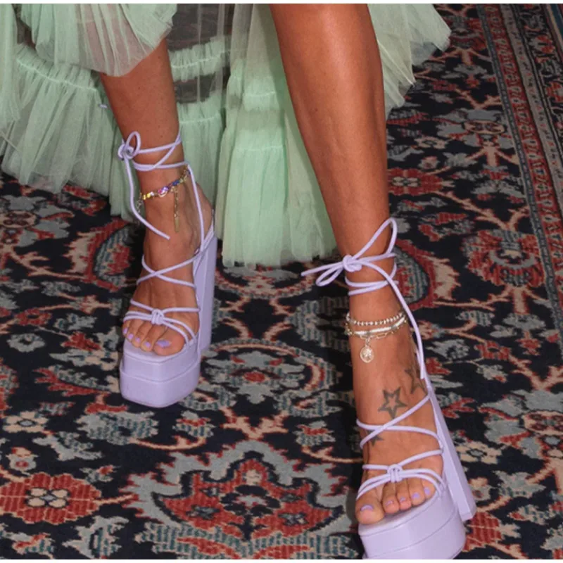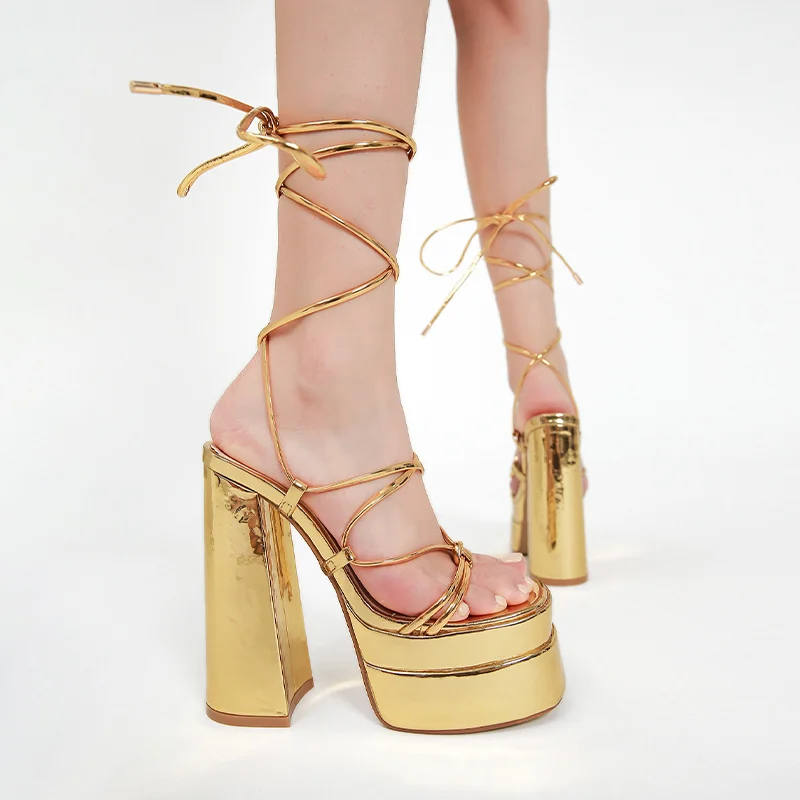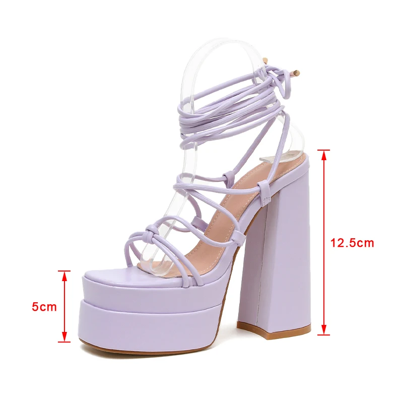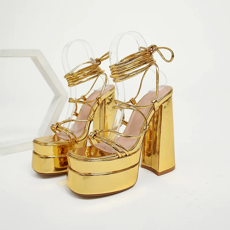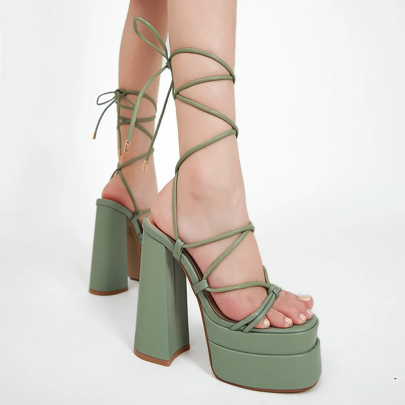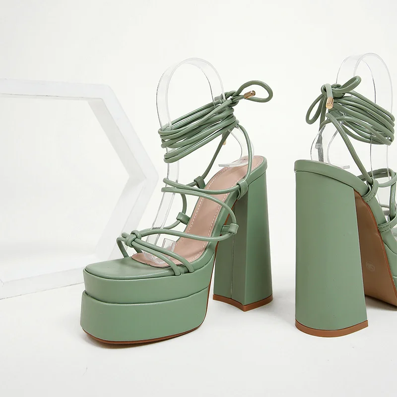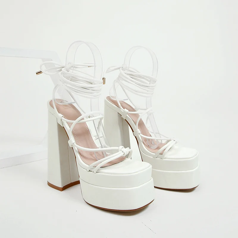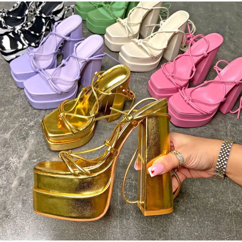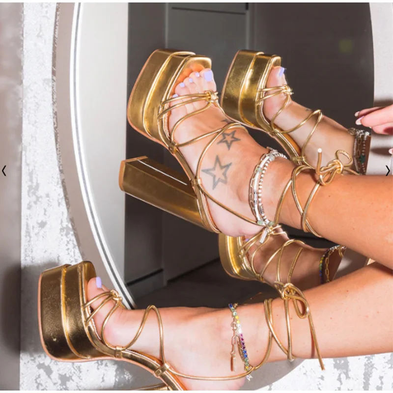 Women Sandals Brand New Sexy Chunky High Heels Pumps Platform Dress Shoes Party Wedding Shoes Cross Lace Up Female Sandals 2022