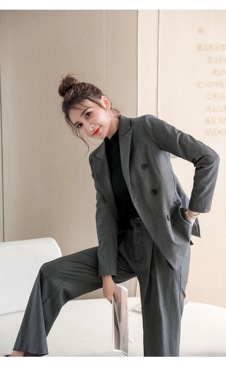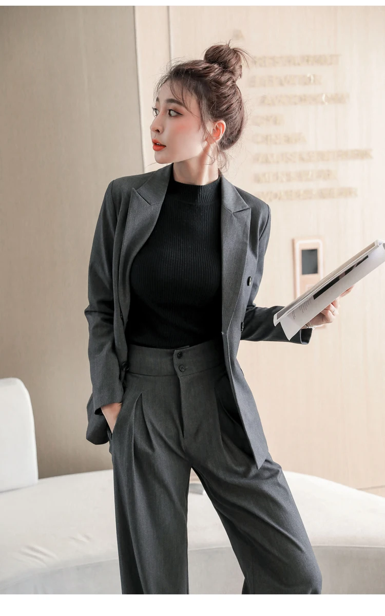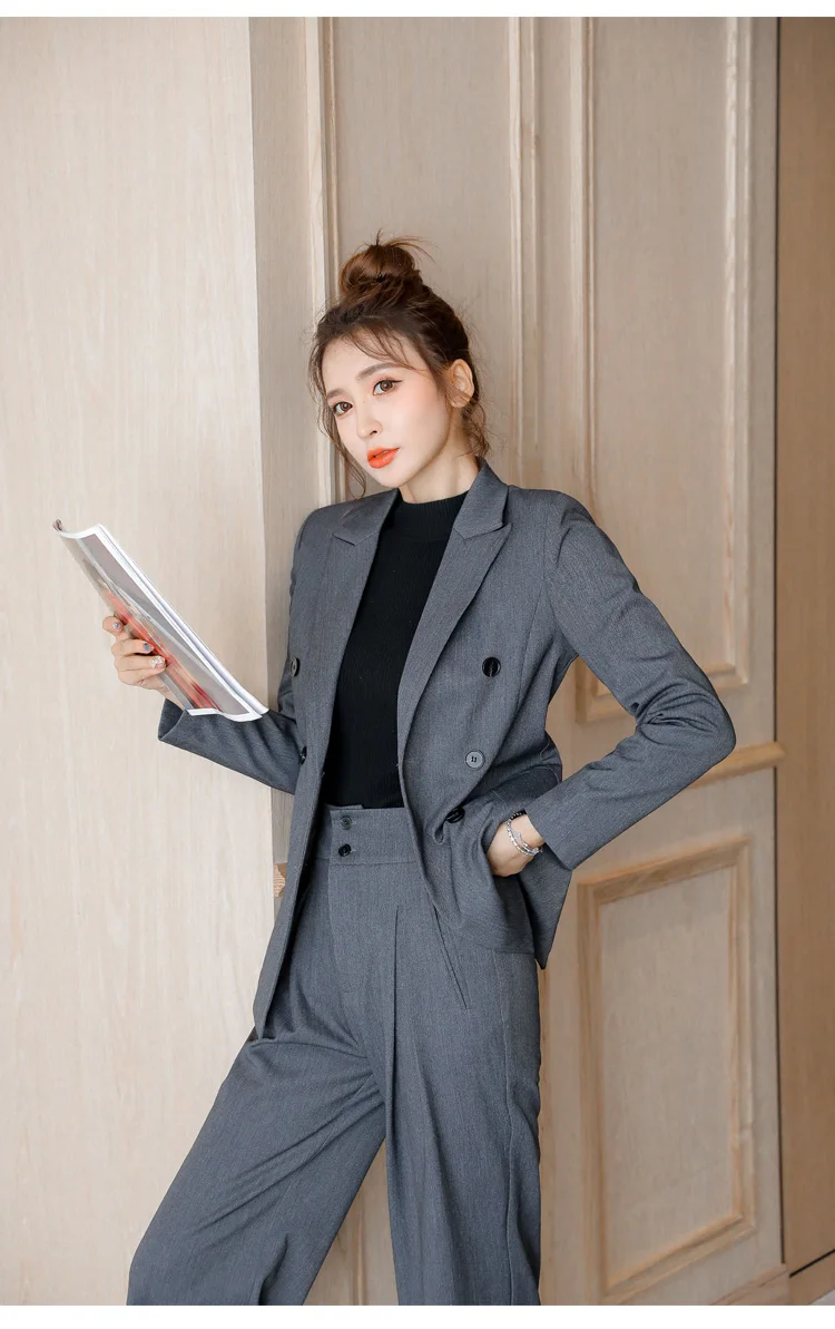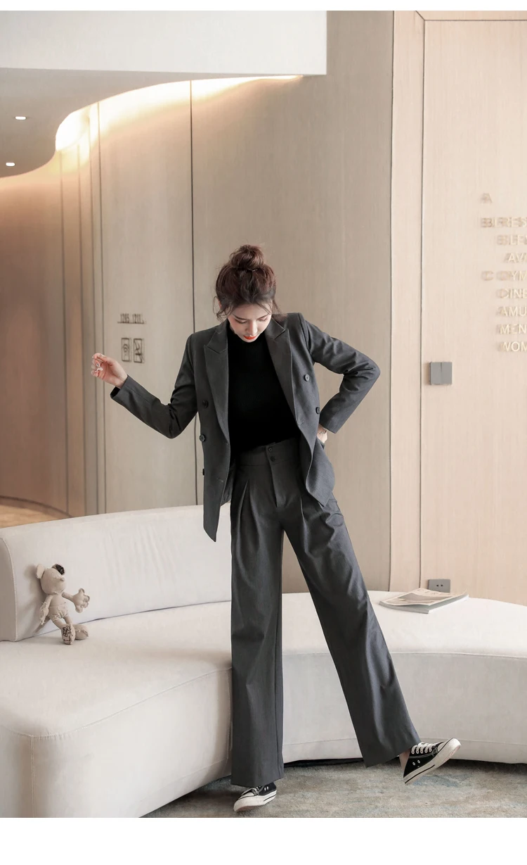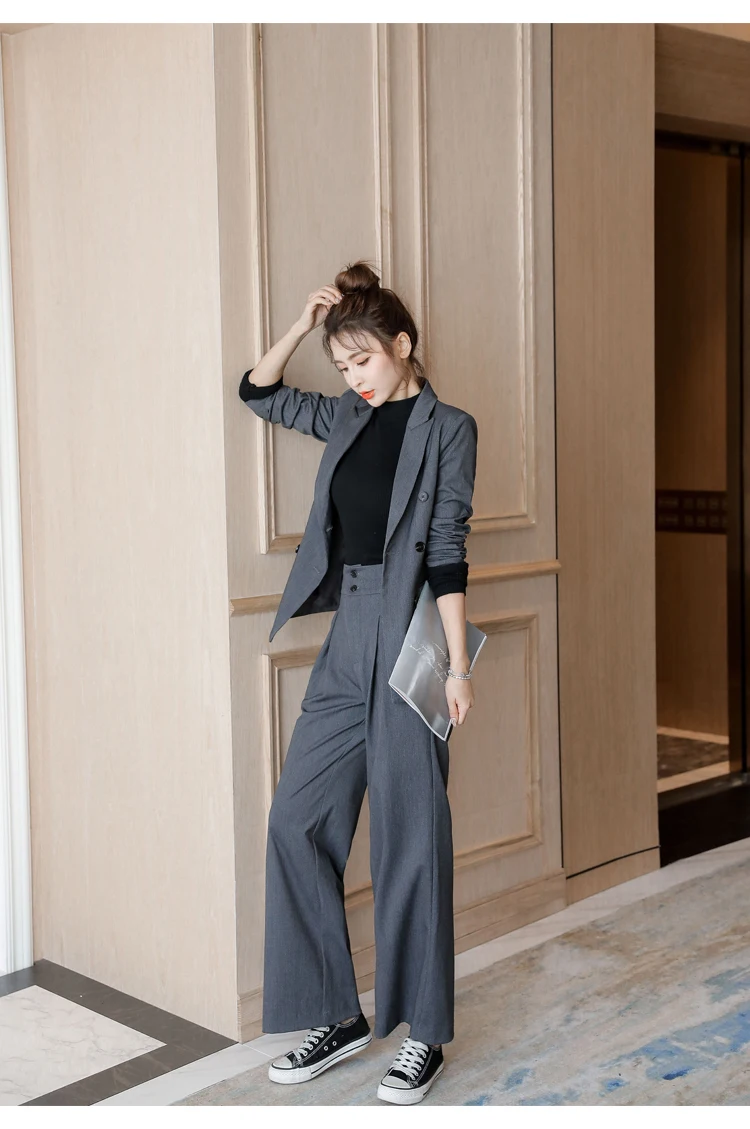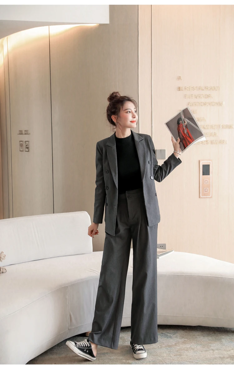 Women's Spring Casual Blazer Pantsuit Fashion Long Sleeve Jacket+Wide Leg Pant 2 Piece Set Office Ladies Business Trousers Suit