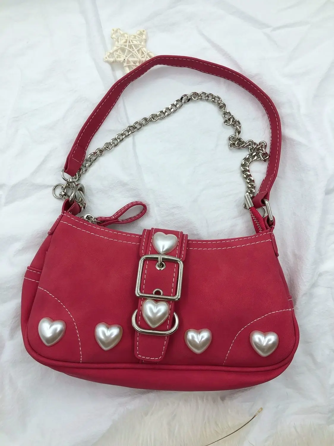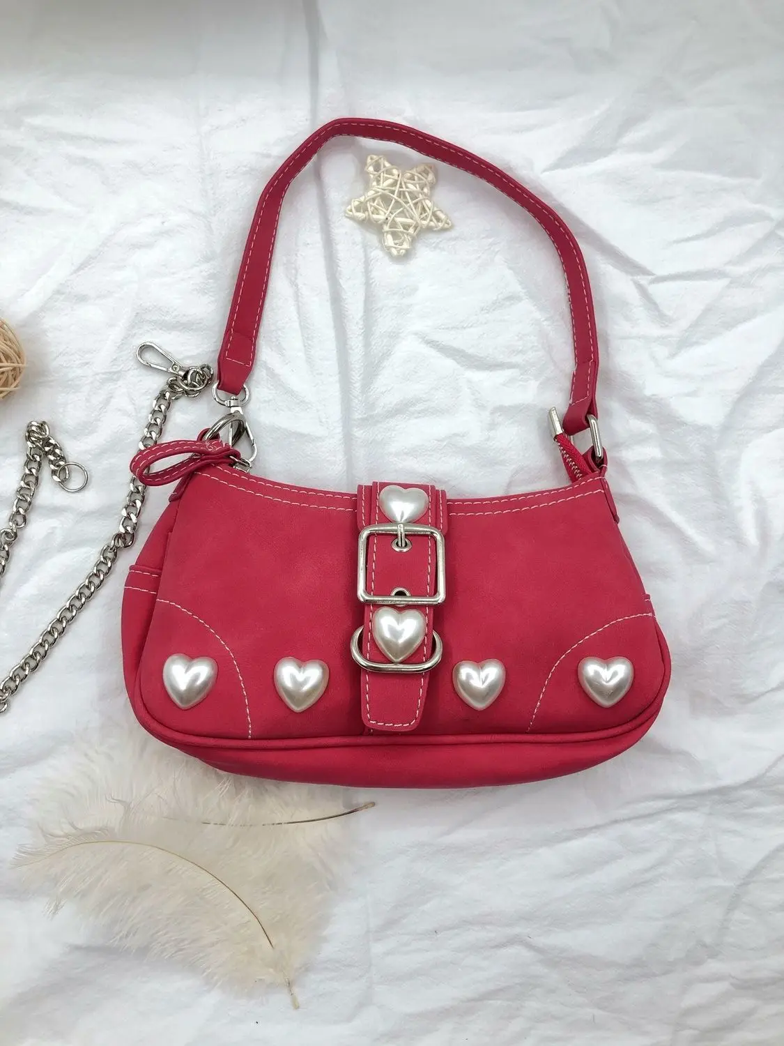 Xiuya Harajuku Vintage Female Shoulder Bag 2022 Rose Red Heart Japanese Goth Lolita Bag Female Handbags Mobile Phone Pouch Purse